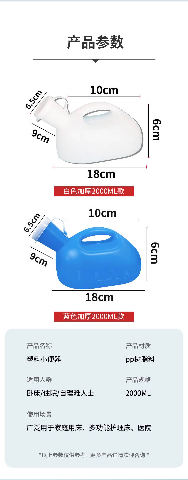 男士塑料小便器加厚款尿壶卧床病人带盖防滑圈防漏容量2000ml刻度