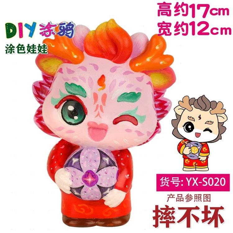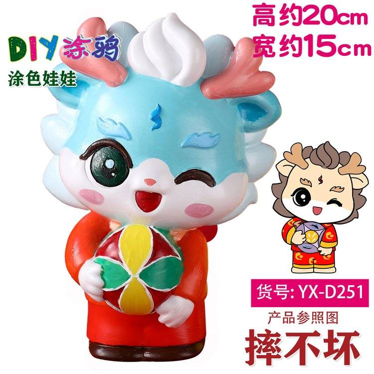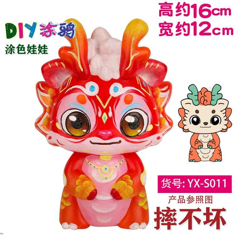 龙年宝宝恐龙娃娃涂色搪胶非石膏白坯儿童玩具摆摊玩具