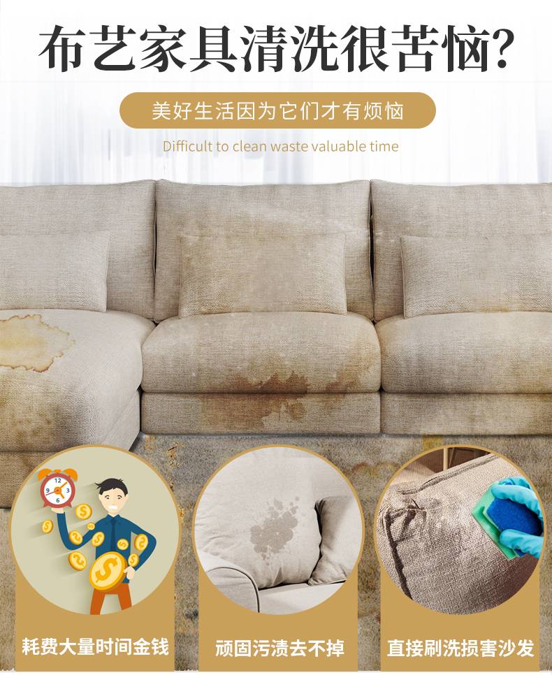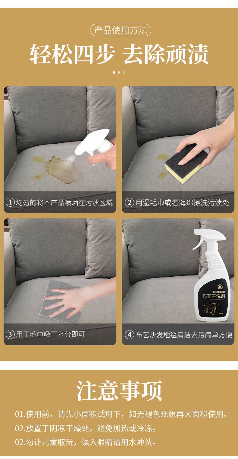 布艺沙发清洁剂免水洗科技布墙布清洗神器洗床垫地毯窗帘去污干洗