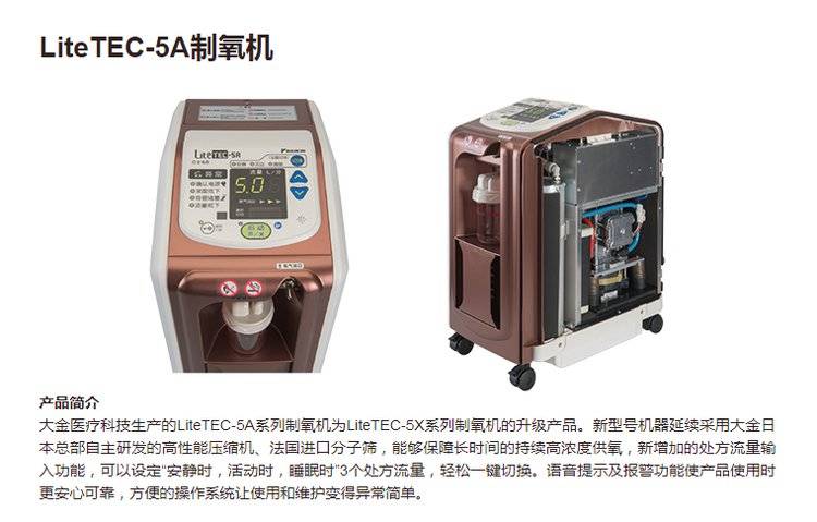 日本大金医用分子筛制氧机 静音5L 家用老人孕妇 吸氧机氧气机