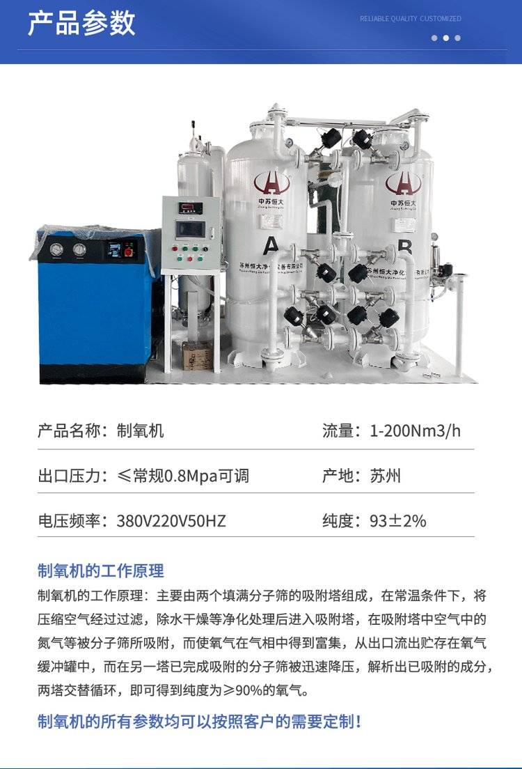 供应水产养殖专用中苏恒大PSA制氧机 激光电焊切割燃烧炉氧气机