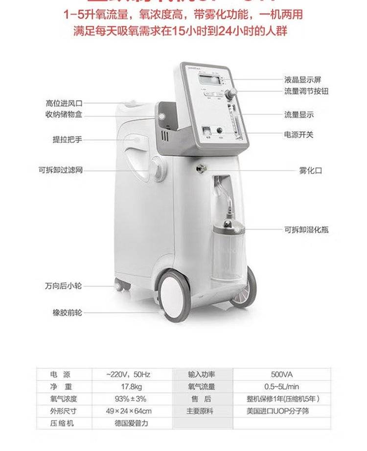 鱼跃制氧机医用家用便携孕妇氧气机5L带雾化老人医用吸氧机9f-5aw