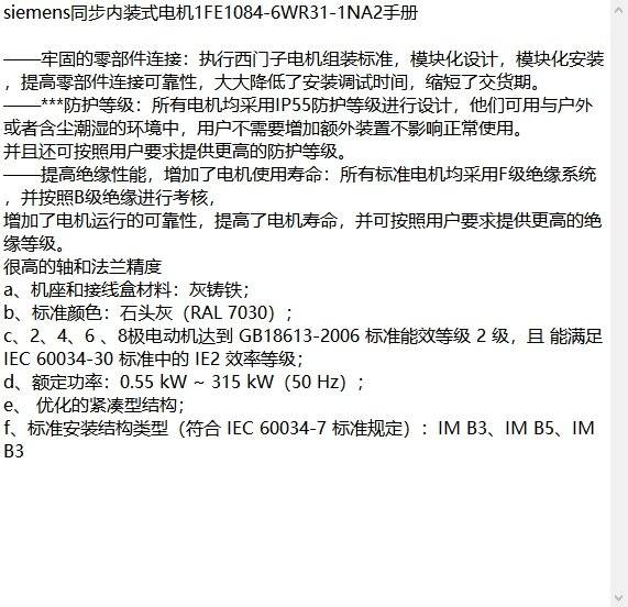 siemens西门子同步电机1FE1084-6WR31-1NA2介绍