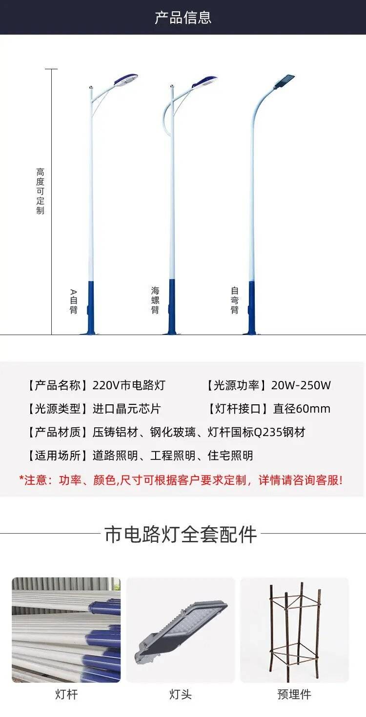 生新交通 led单臂户外照明 街道市政高亮道路灯 5米6米7米自弯挑臂