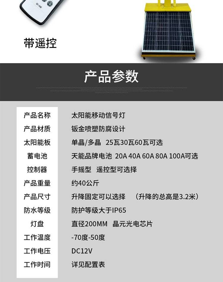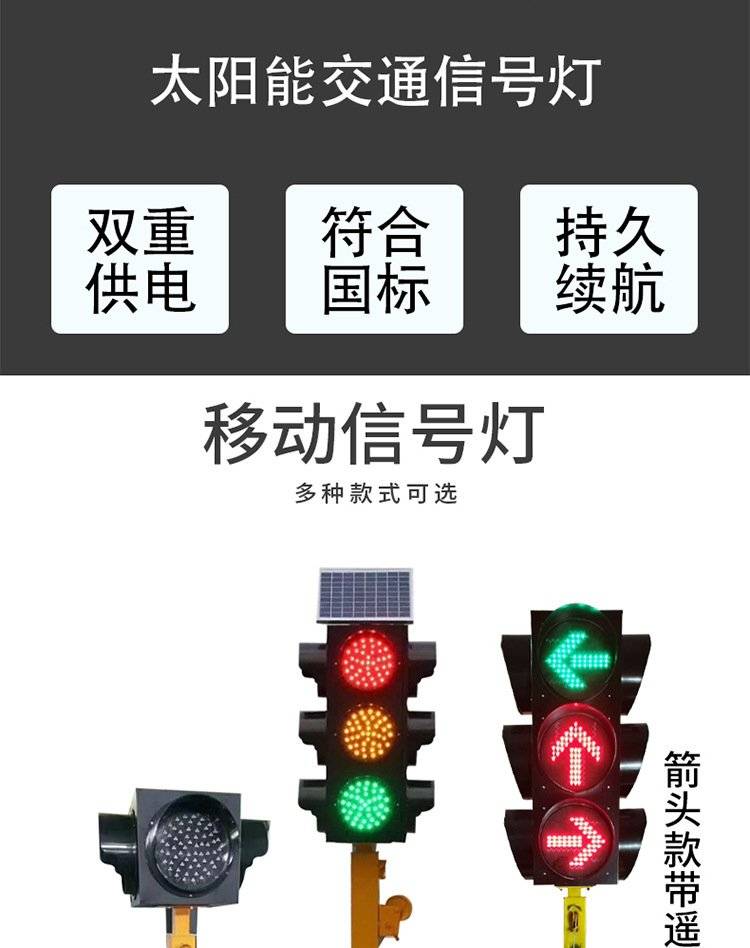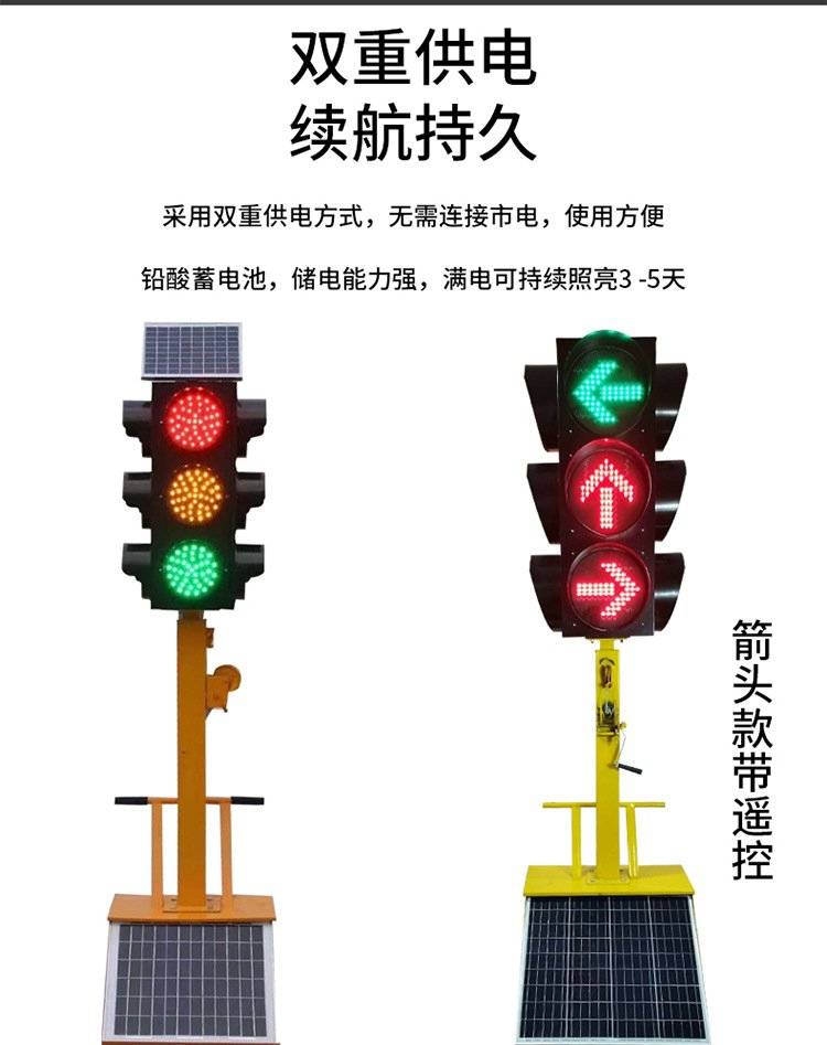 鸿福熙 12V遥控控制临时太阳能交通信号灯 移动红绿灯LED交通灯