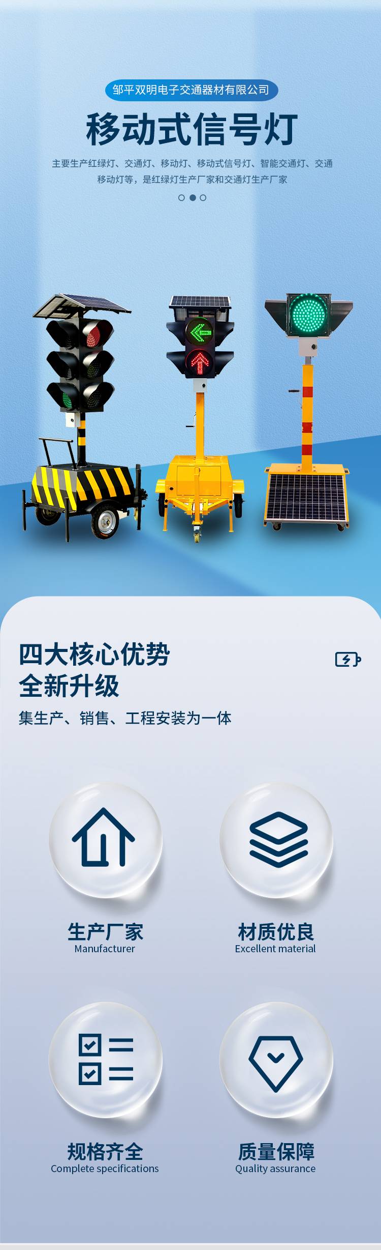 双明 太阳能移动信号灯 临时路口红绿灯 便携式交通灯工厂直营