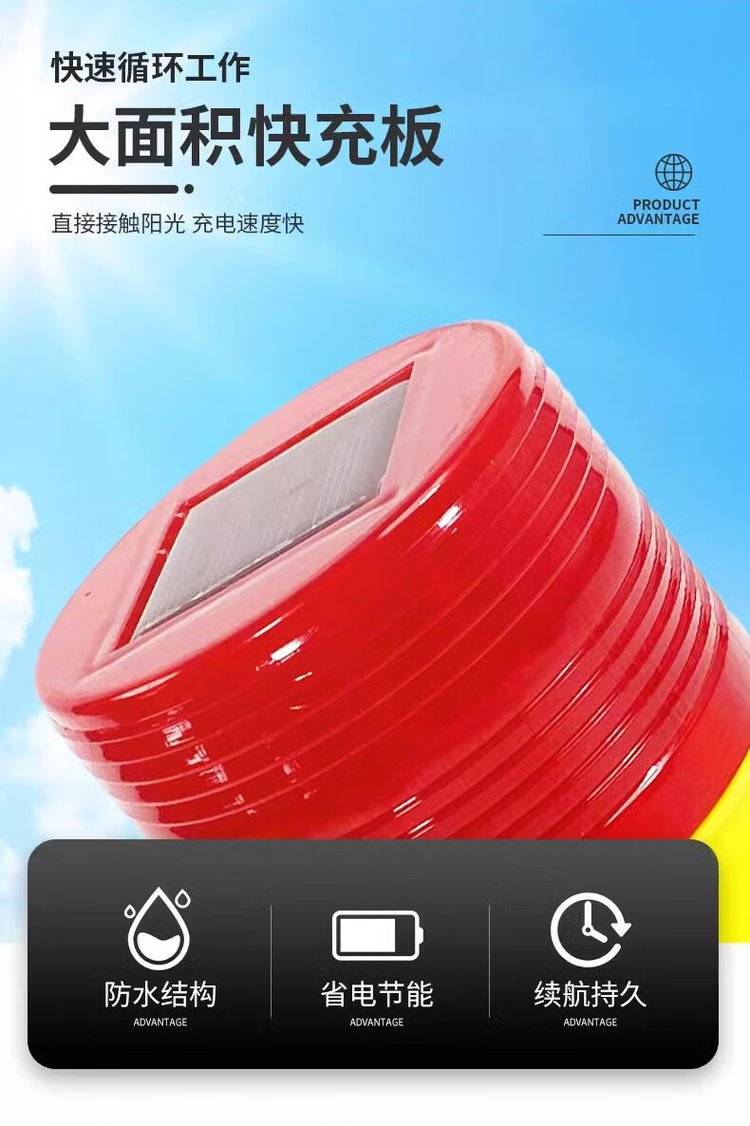 太阳能警示灯 LED 爆闪交通灯 户外防水施工警 示灯光控自动感应