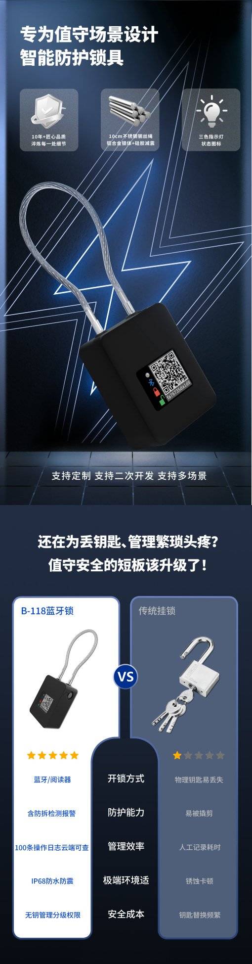 防撬设计: 蓝牙锁通常具备防撬设计,提高了锁的物理安全性