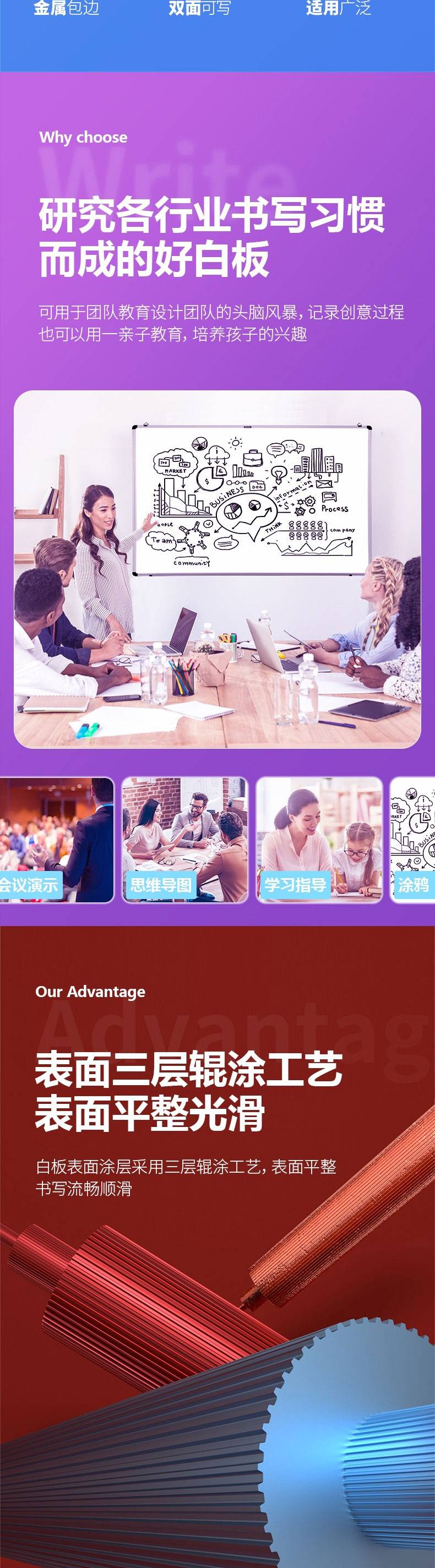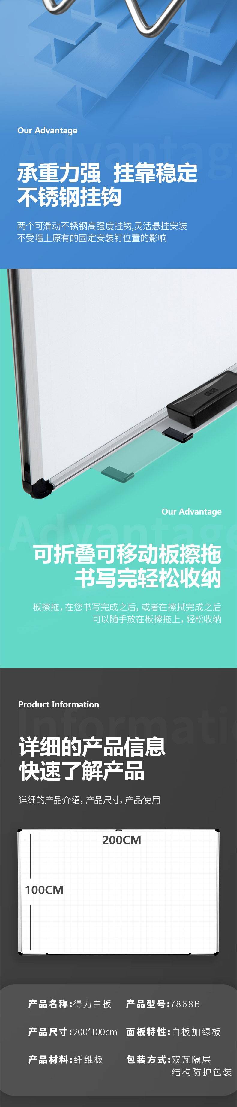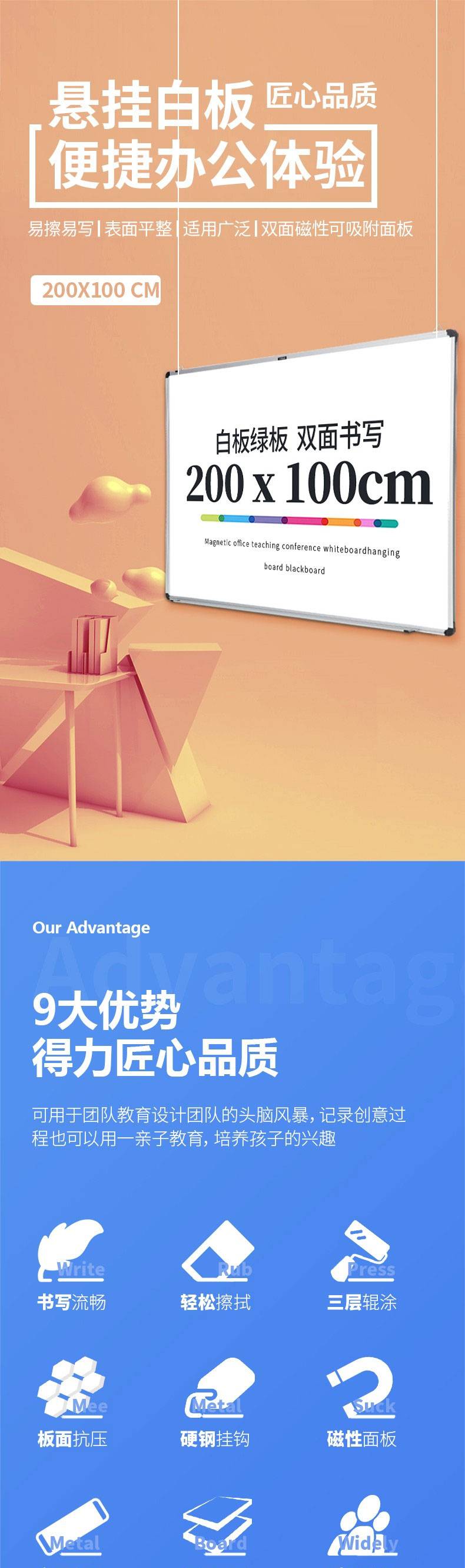 得力7868B双面磁性白板 白+绿板 200*100cm 1块 带板擦拖