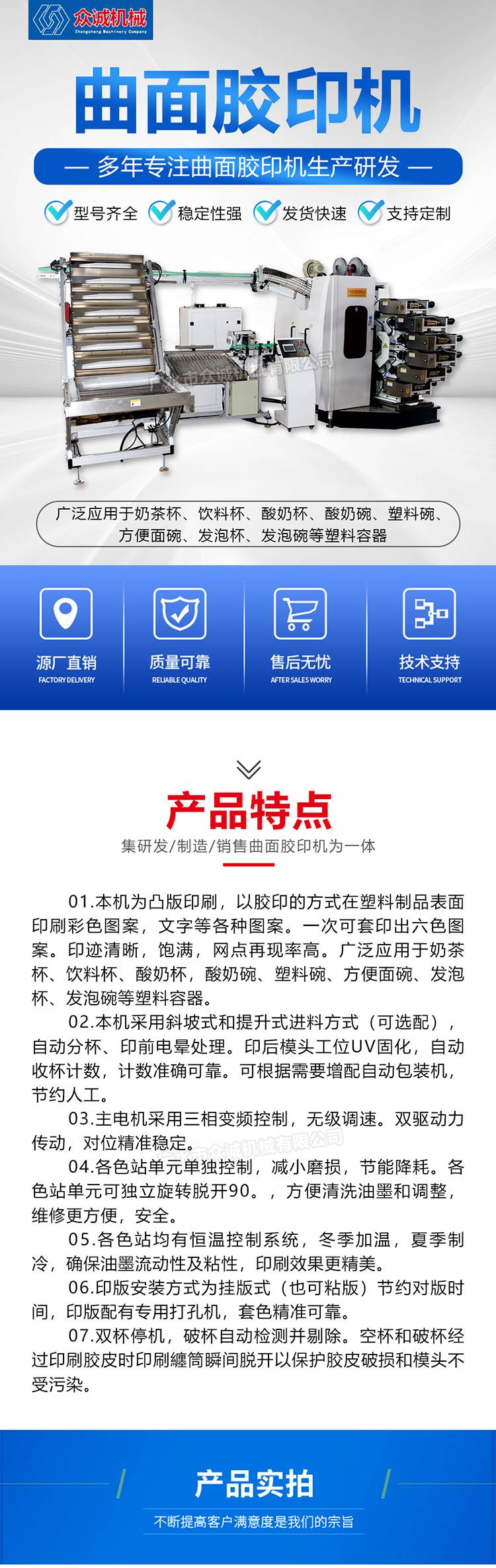四色六色曲面胶印机 方便面碗印刷机 主电机三相变频控制 无级调速