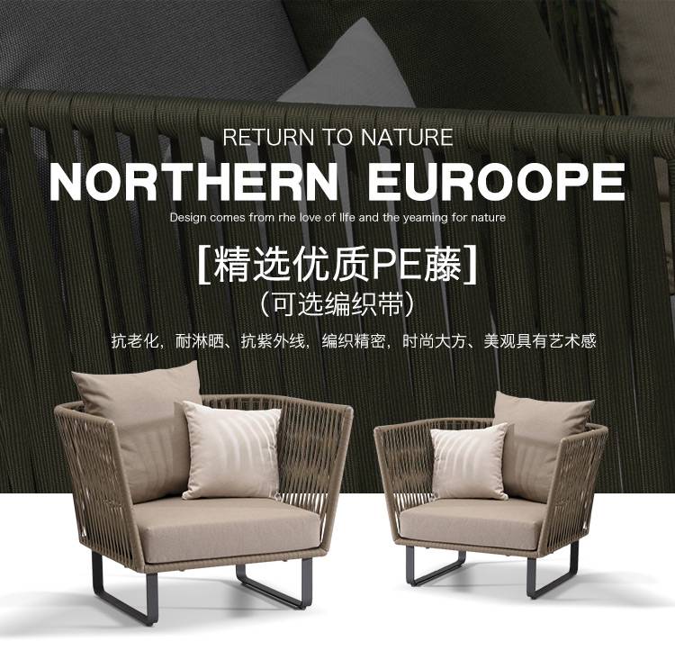 双馨家具不锈钢铁艺花园别墅户外沙发藤编藤椅易于清洁维护省心
