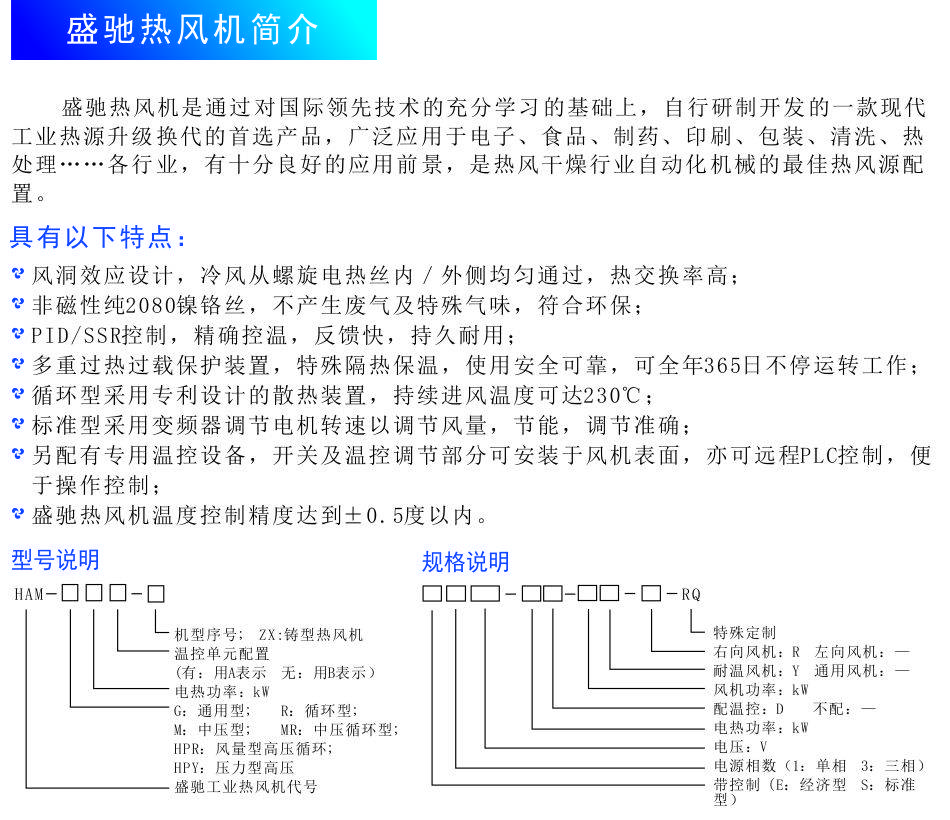 盛驰 小型通用热风机 HAM-G5B-21 低压风机 可持续加热