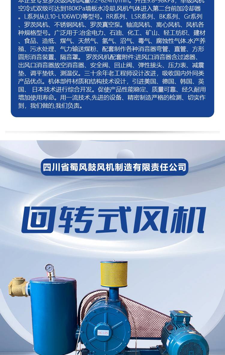 蜀风低噪音回转式风机小型污水处理曝气机适用于多种介质