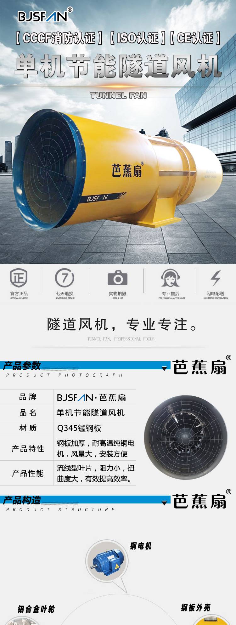 芭蕉扇单机110kW进口大风量低噪音风机国外三速隧道风机