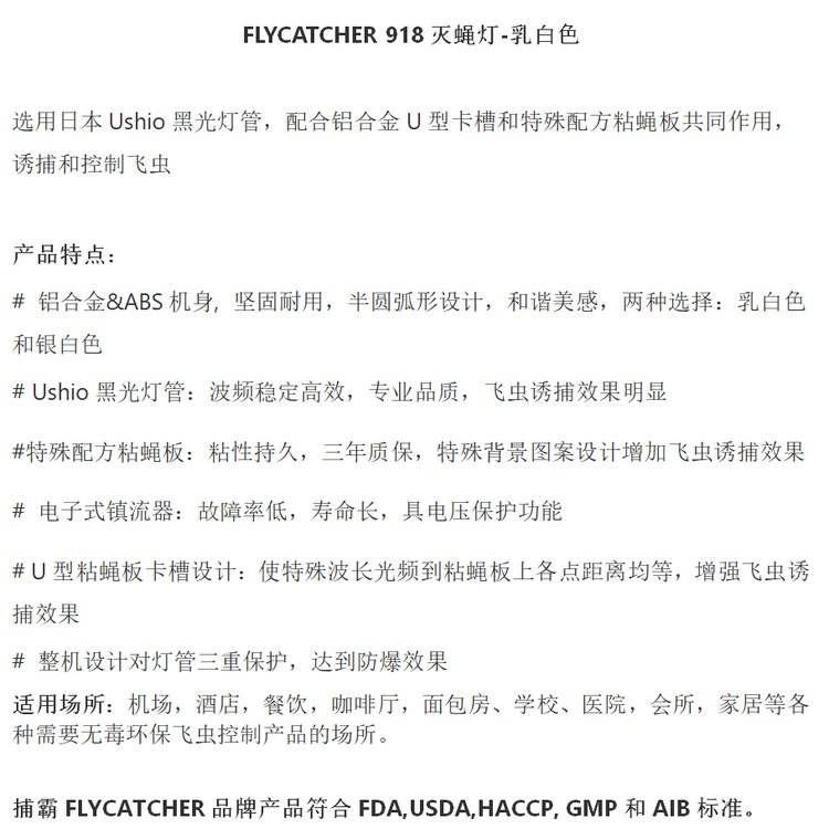 捕霸918灭蚊器 食企药企 酒店餐饮 包装间 商用家用灭蝇灯 20年品牌