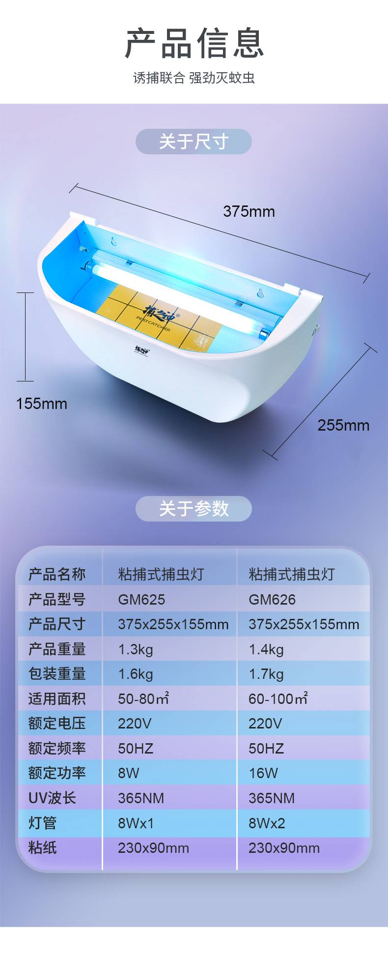 捕之神GM625粘捕式灭蚊灯 8W环保安全 高效商用灭蚊器