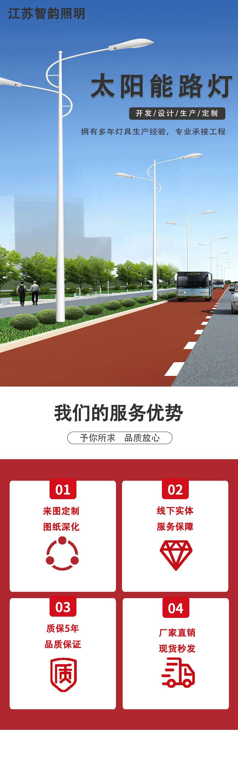 智韵 大功率 LED太阳能路灯 户外建设照明灯 光照柔和