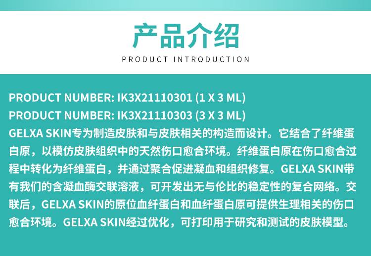 3D打印生物墨水GelXA SKIN专为制造与皮肤相关的构造而设计