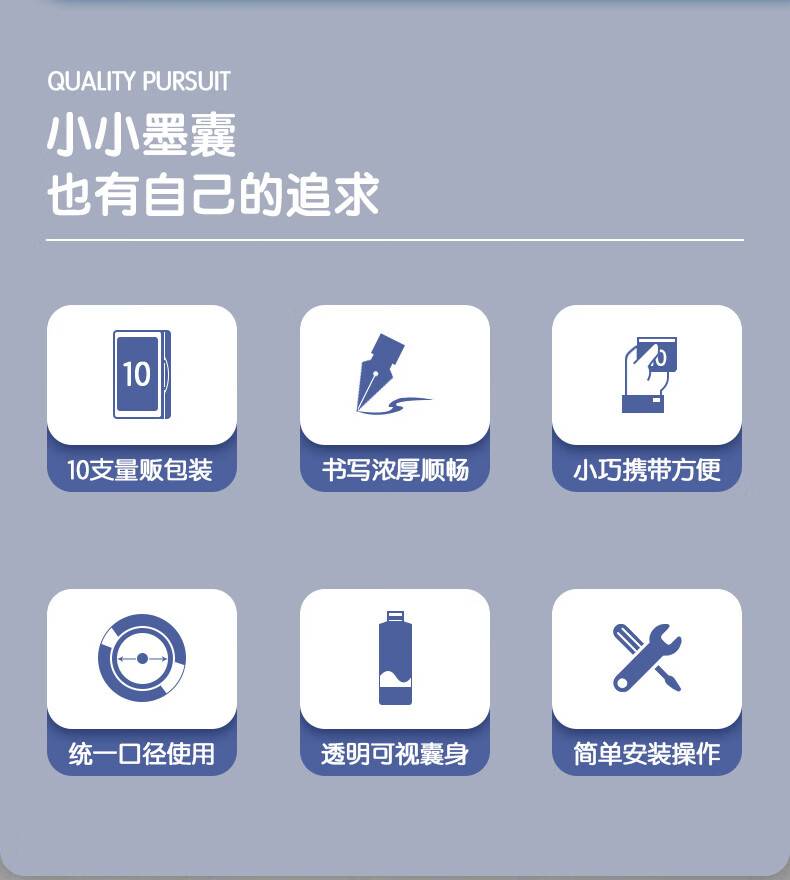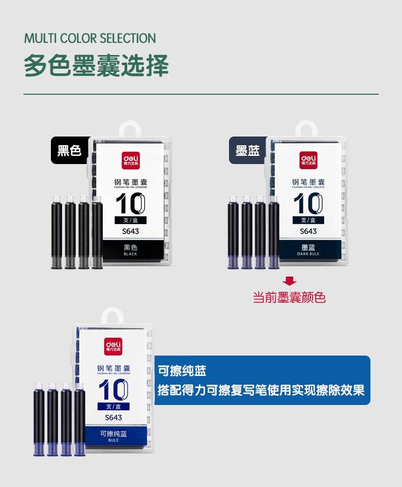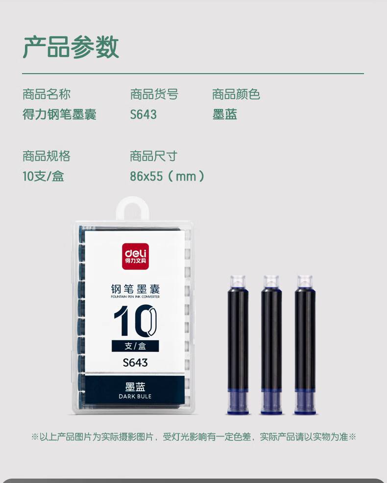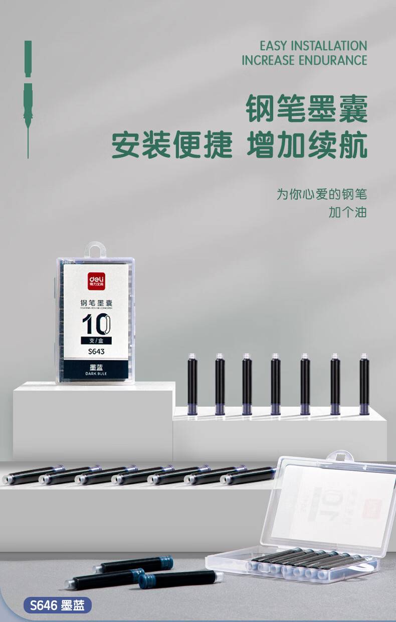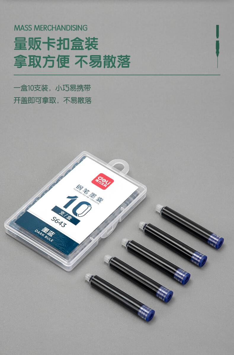 得力(deli)s643 钢笔墨囊 钢笔墨水 可替换墨囊 10支【 墨蓝色】