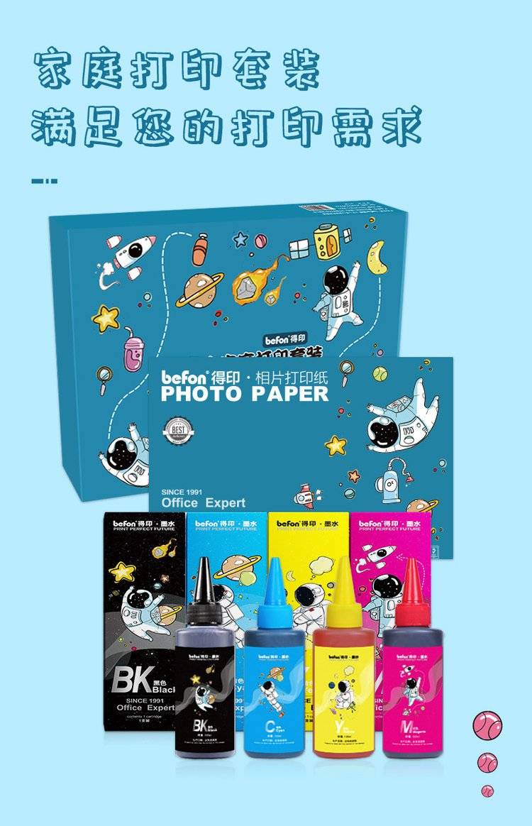 得印 通用墨水四色套装+相纸 适用803墨盒 佳能 惠普 佳能 爱普生喷墨打印机墨水 连供填充彩色墨汁