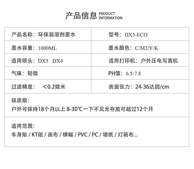 印彩王适用银河DX5户外压电写真机弱溶剂墨水
