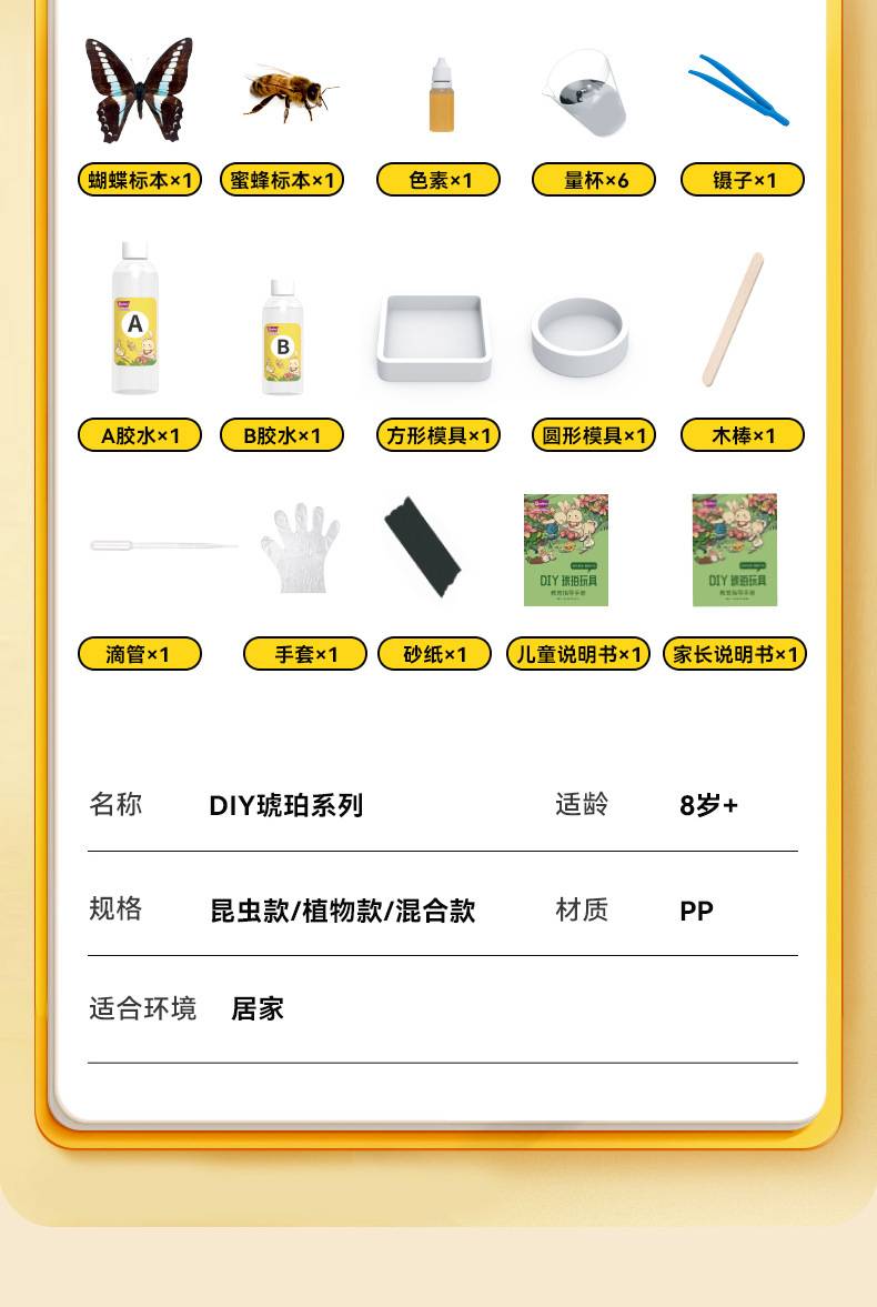 儿童琥珀昆虫标本制作工具真虫DIY蝴蝶甲虫手工实验材料自制玩具