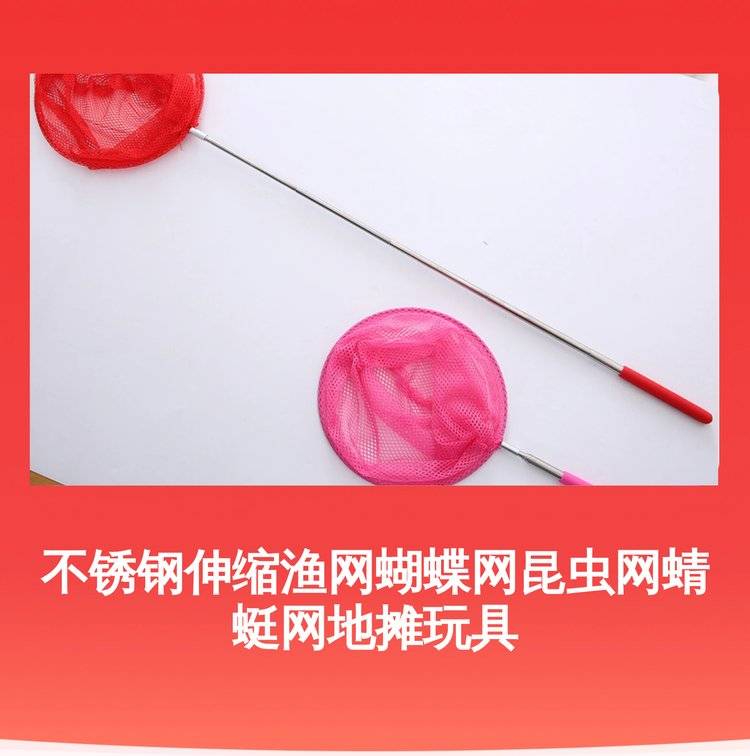 不锈钢伸缩渔网蝴蝶网昆虫网蜻蜓网地摊玩具