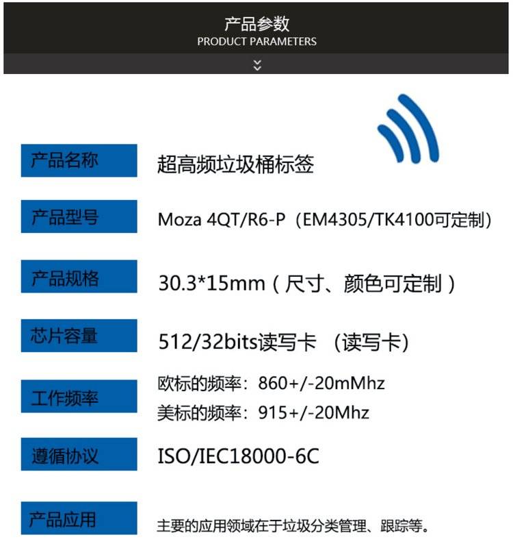 RFID垃圾桶标签具有多标签防碰撞识别技术,完美解决垃圾桶等待运输过程中堆放一起的相互影响,另外,垃圾桶标签可在几米内被特定识别,盘点和搜索的便利性突出。 基于RFID技术通过在垃圾桶上嵌入垃圾桶电子标签,可快速了解每个垃圾桶产生的垃圾量的相关信息及垃圾收集的作业情况,通过垃圾分类智能监管系统结合RFID垃圾桶标签系统进行跟踪,实现全电子化的垃圾桶数据集中管理,为全过程监管提供可靠可信的数据和决策支持。