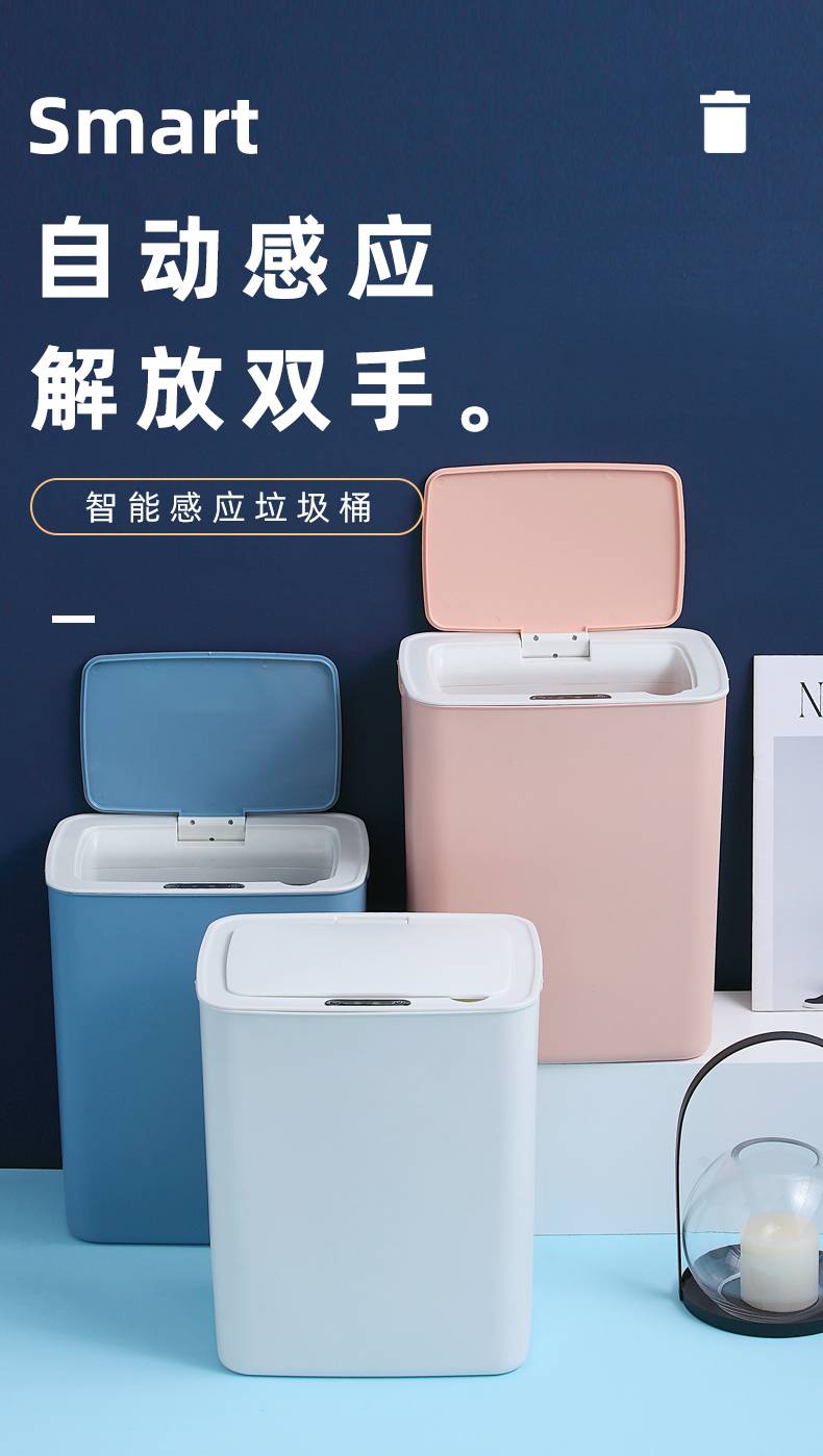 智能感应垃圾桶家用电子带盖自动卫生间厨房厕所纸篓电动垃圾桶大