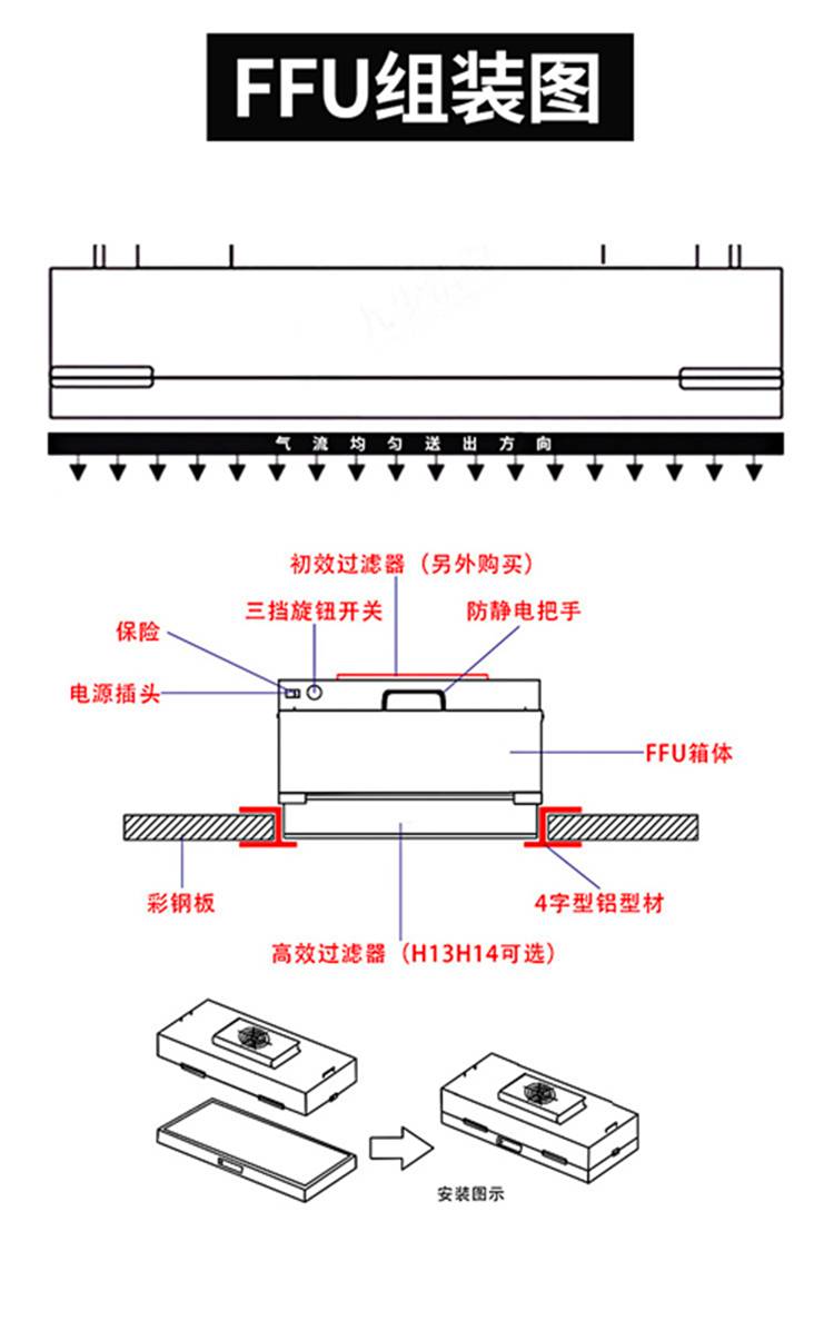 FFU低功率节能环保百级无尘车间电脑控制交流直流电机定制