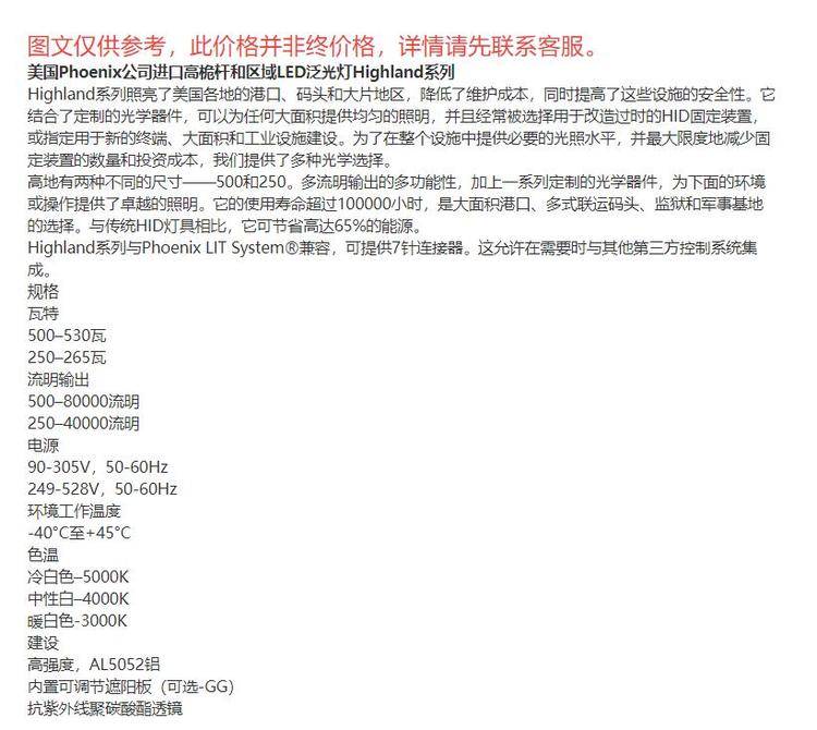 美国Phoenix公司进口高桅杆和区域LED泛光灯Highland系列【议价】