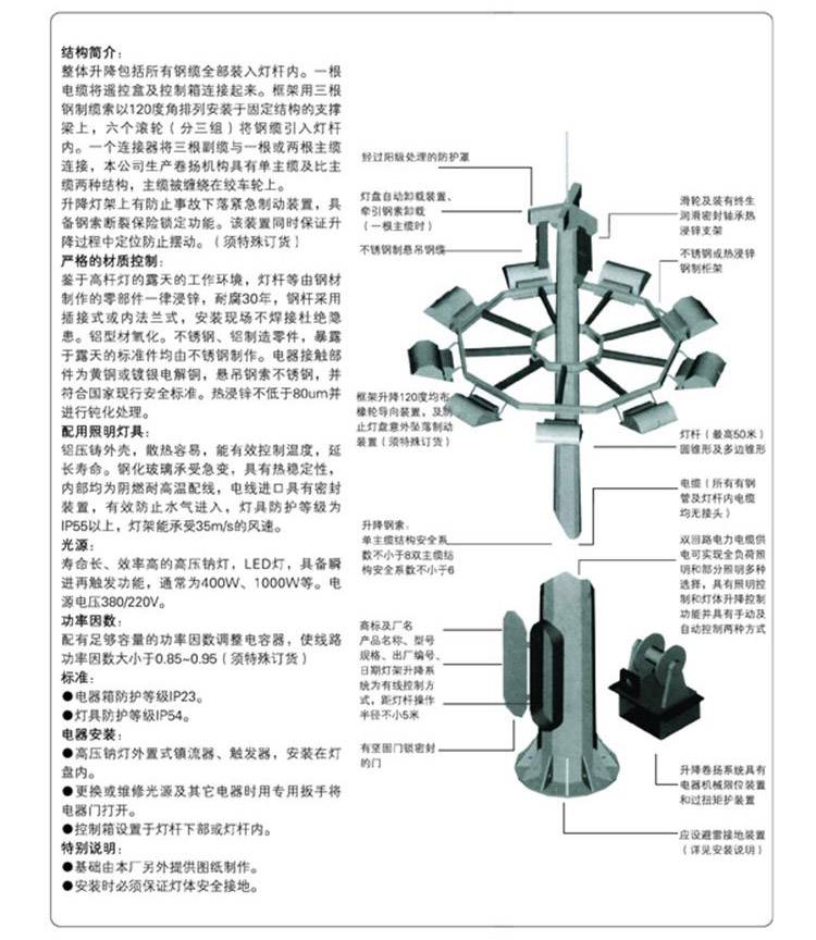 中洲照明 升降式高杆灯 高度可定制造型 景区广场道路LED亮化