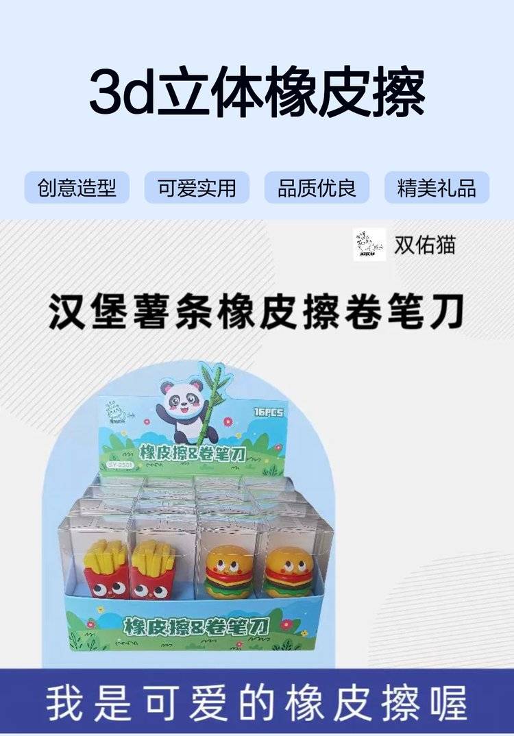橡皮汉堡薯条造型 3D立体橡皮擦 铅笔卷笔刀笔刨可爱文具小礼品