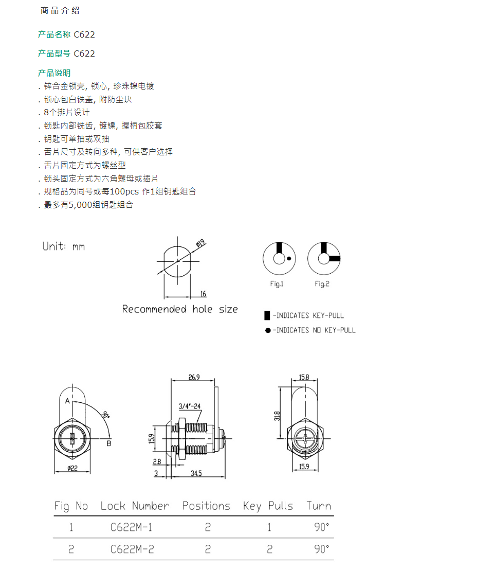 JTIC品牌 高安性叶片锁 点餐机ATM取票机锁娃娃机锁C622