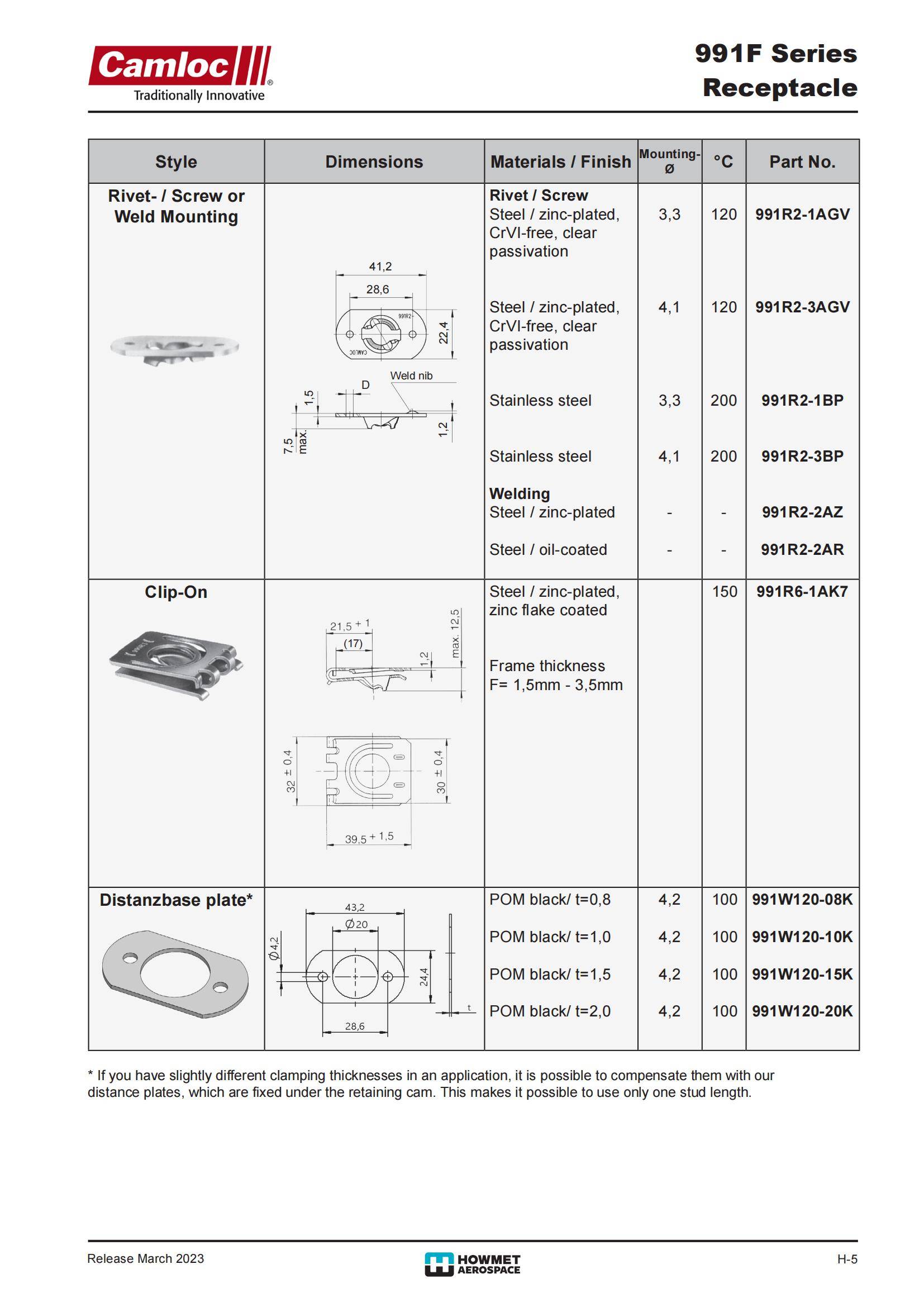 英国Camloc锁柱锁座锁片紧固件991R2-1AGV 991R2-3AGV 991R2-1BP