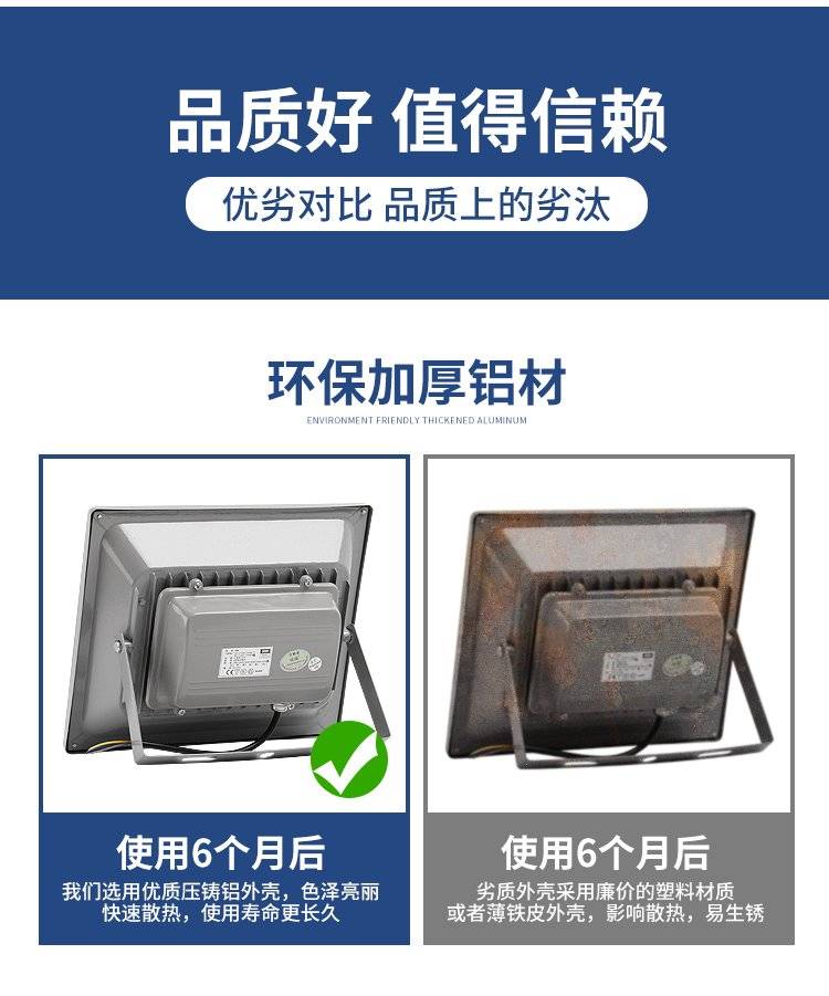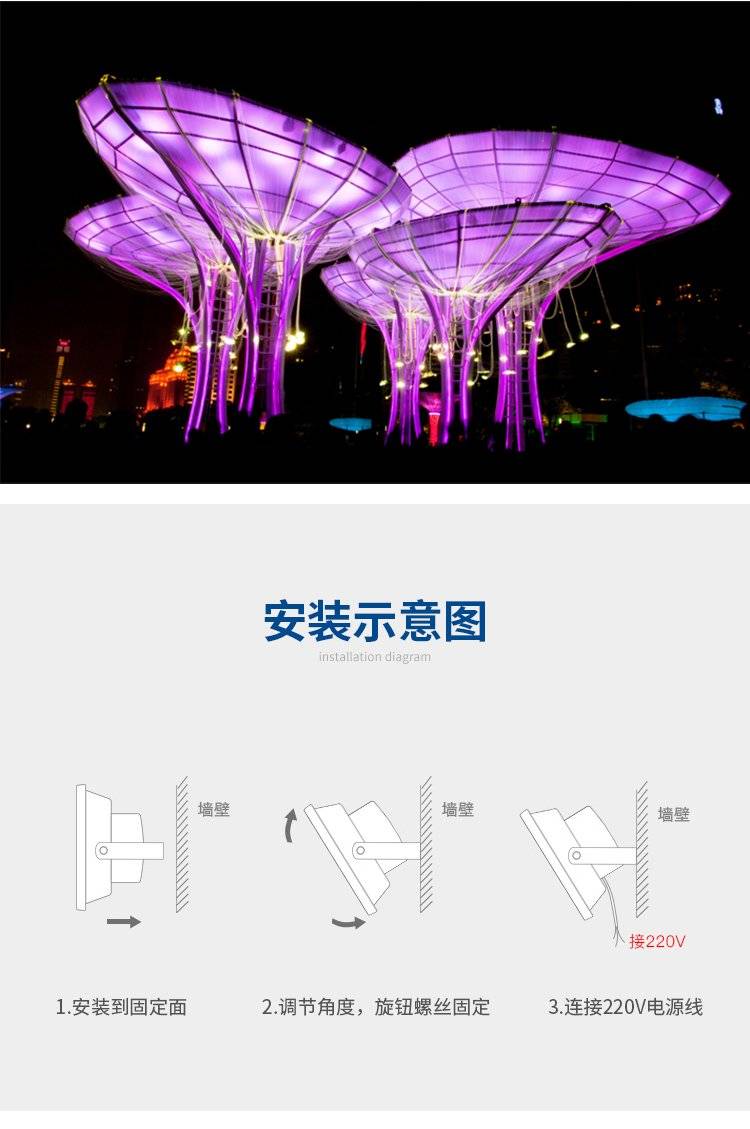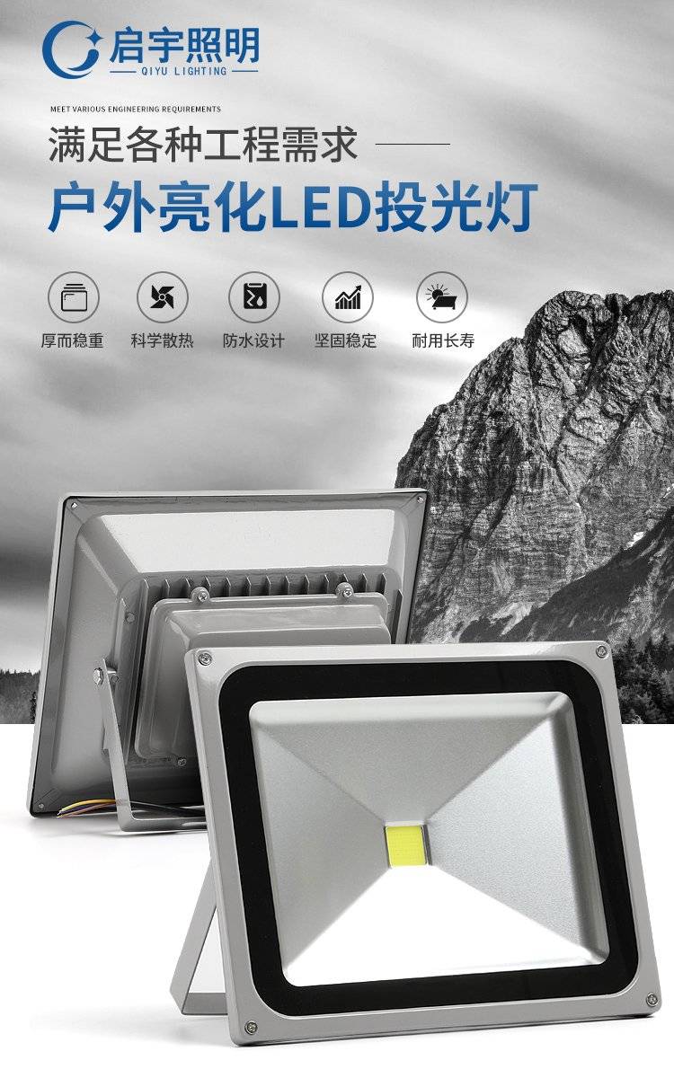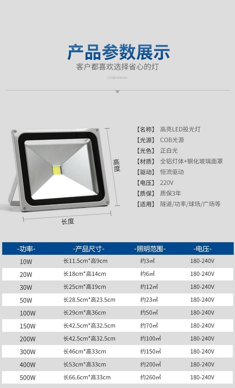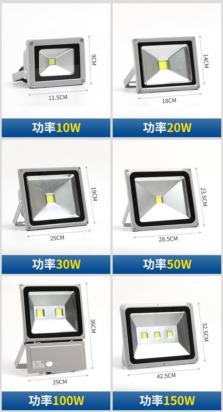 大功率led投光灯户外防水庭院照明超亮车间探照投射灯