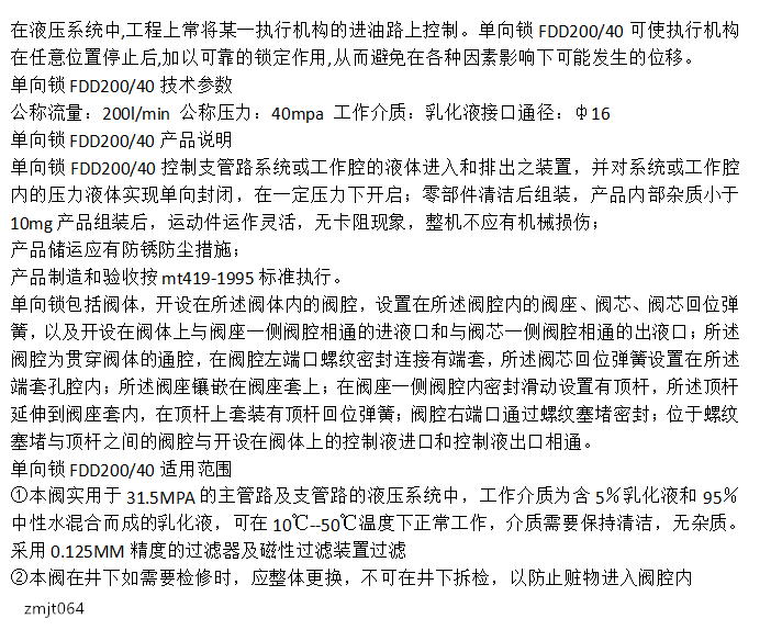 单向锁FDD200/40 适应能力强 安装简单 发货及时