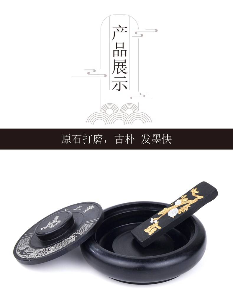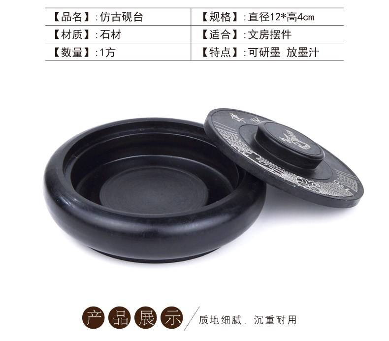 石头研墨汁原石天然学生砚台带盖墨池墨M盘墨碟墨砚初学者墨盒文
