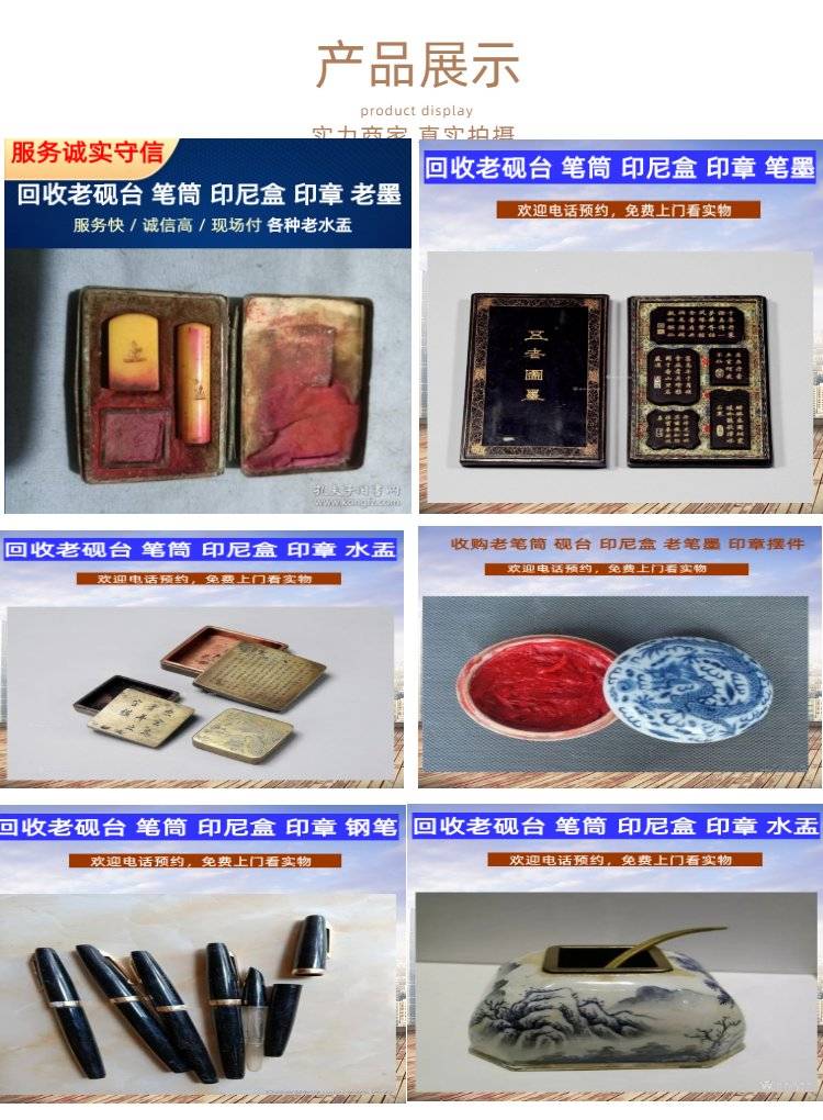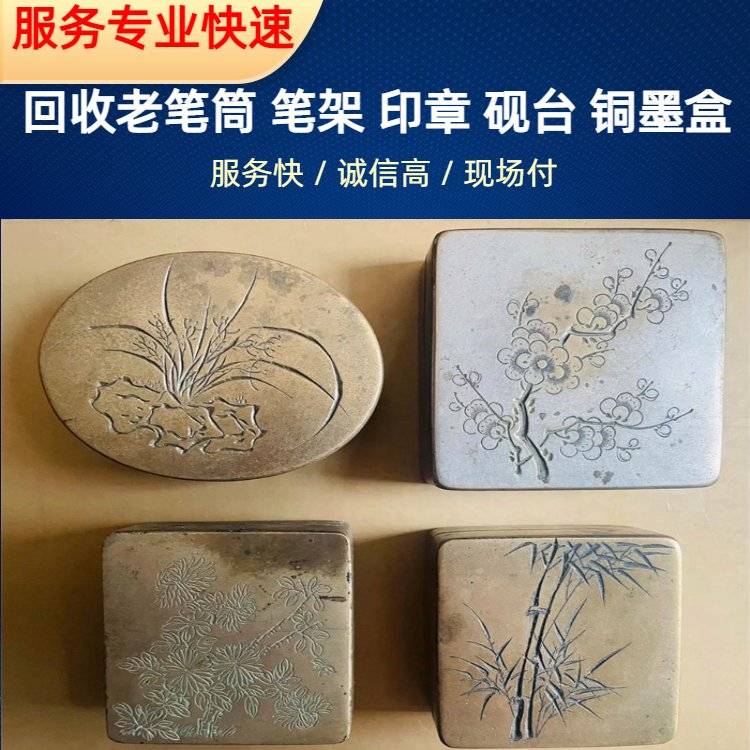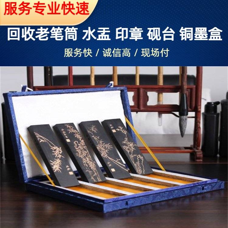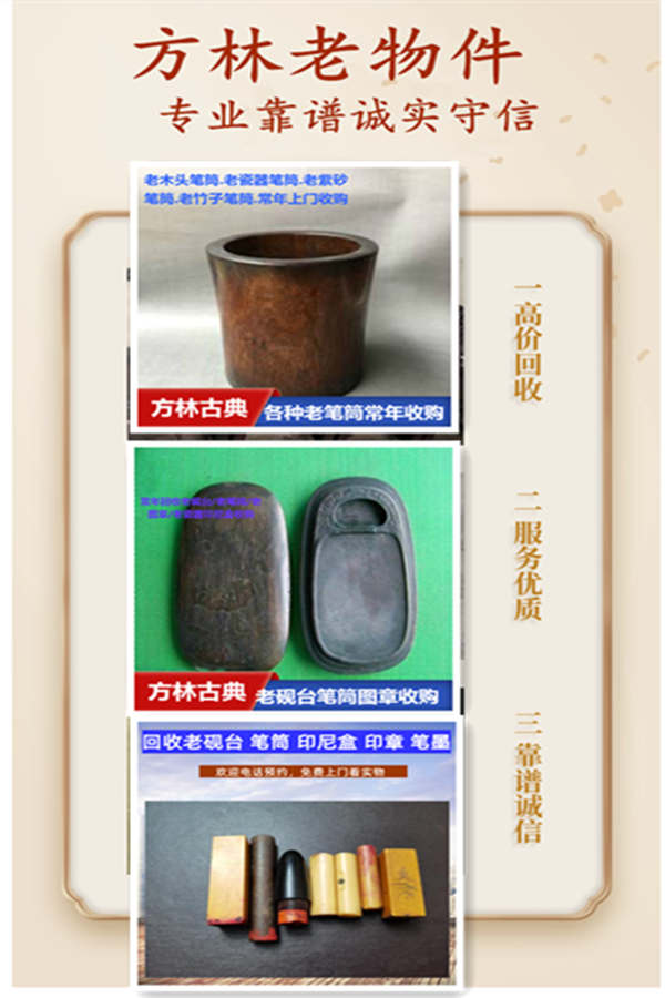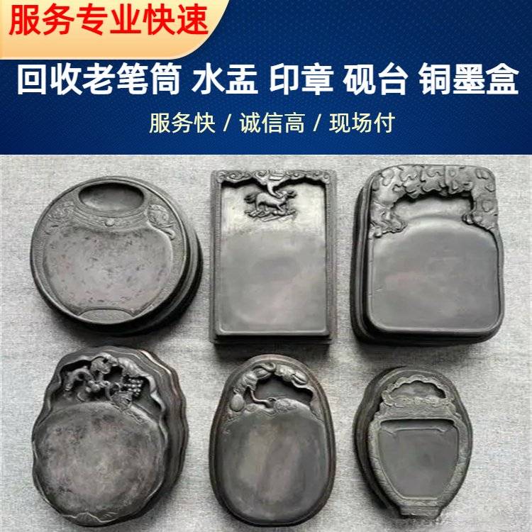 常年回收老砚 台 红木笔筒 老墨条 雕刻印章收购 专车上门提货