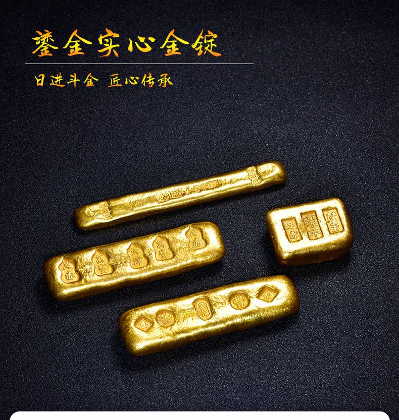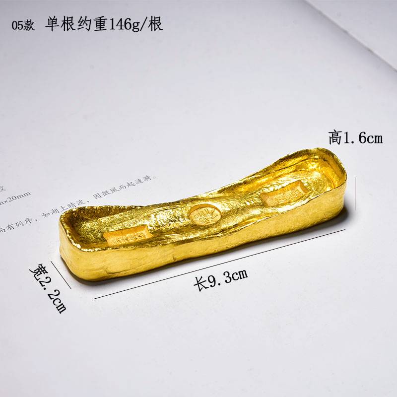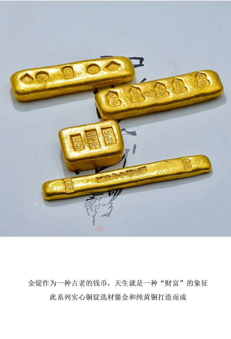 黄铜鎏金仿古金锭摆件高档珍藏礼品文房四宝纸墨笔砚 文镇尺压纸