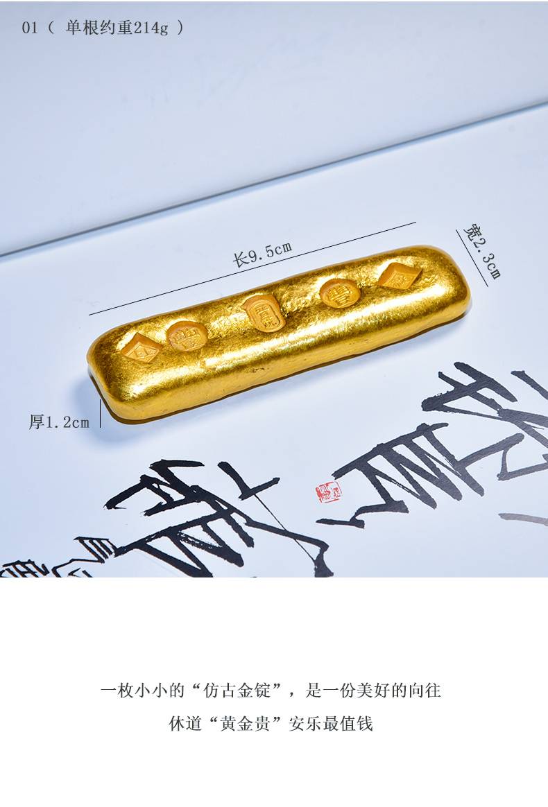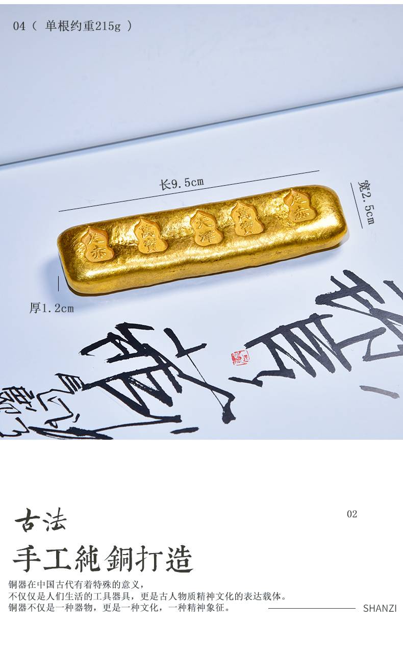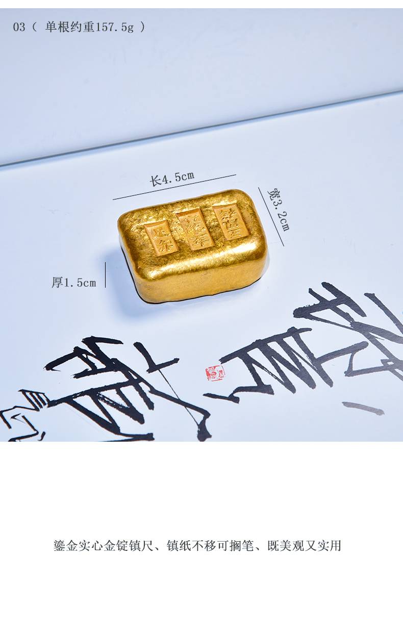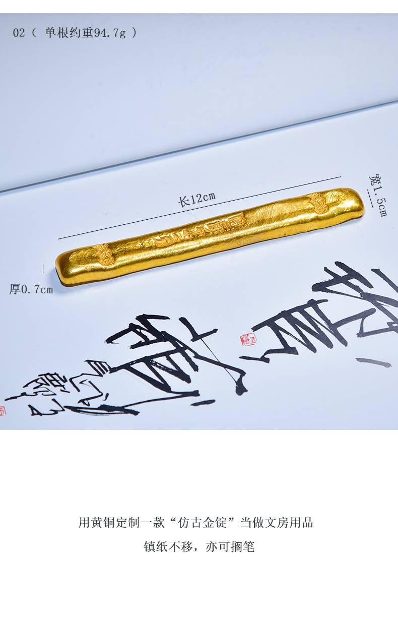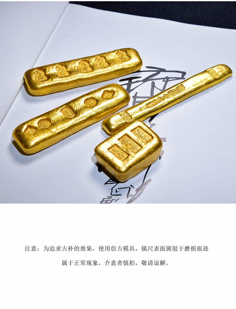 黄铜鎏金仿古金锭摆件高档珍藏礼品文房四宝纸墨笔砚 文镇尺压纸 多功能书法国画创作专用创意中国风小摆件