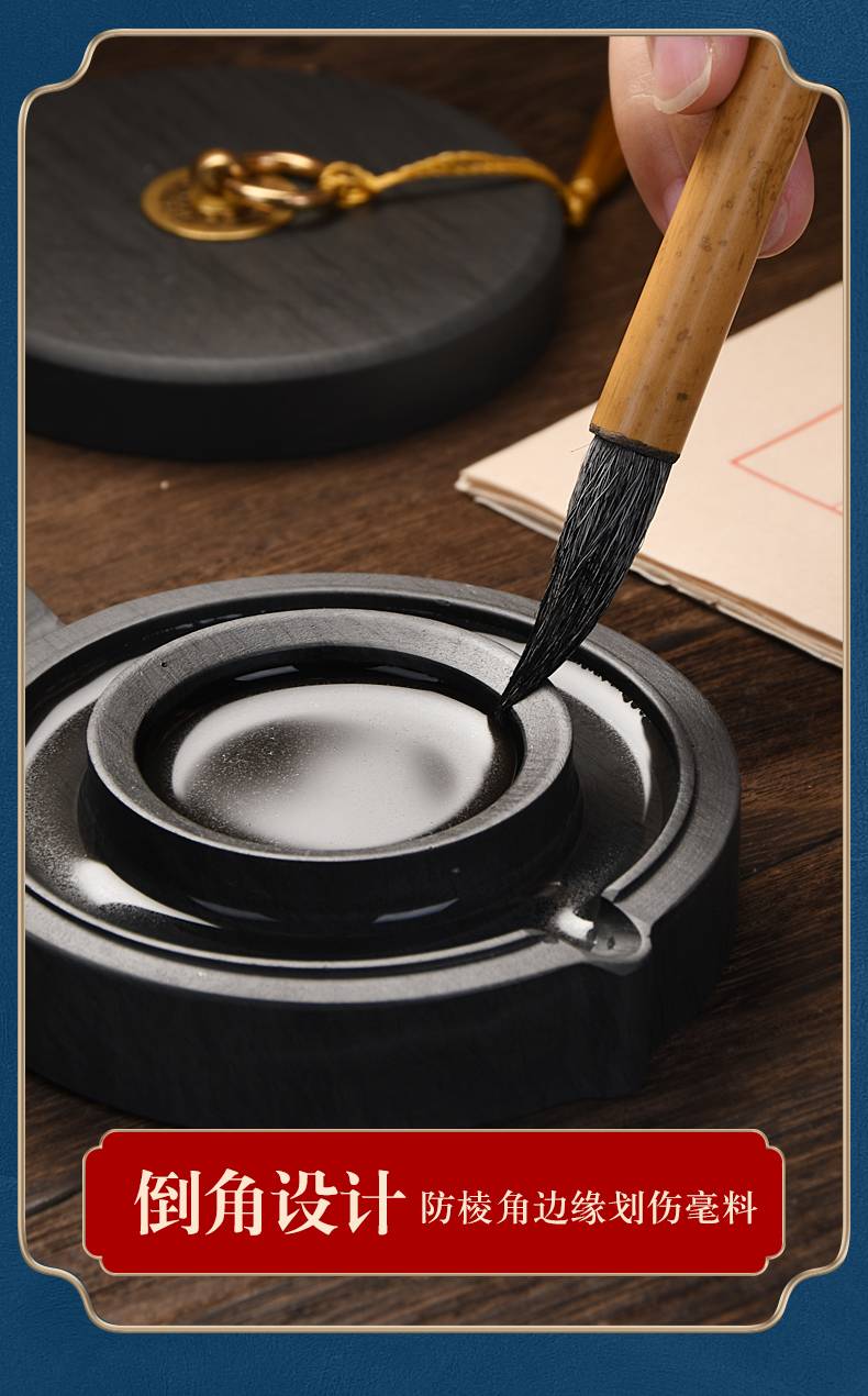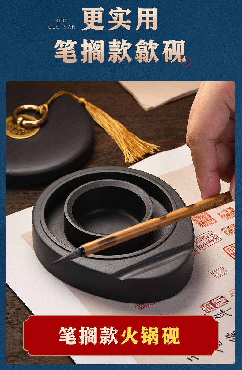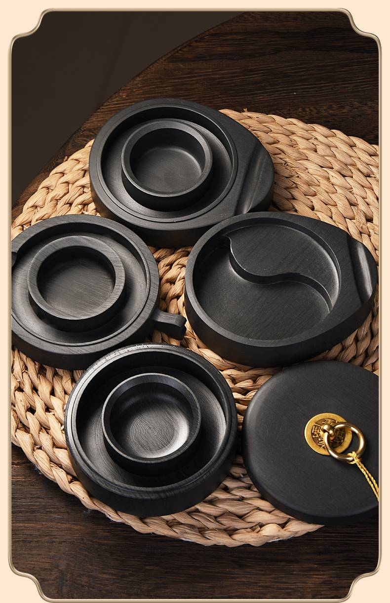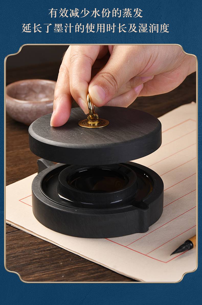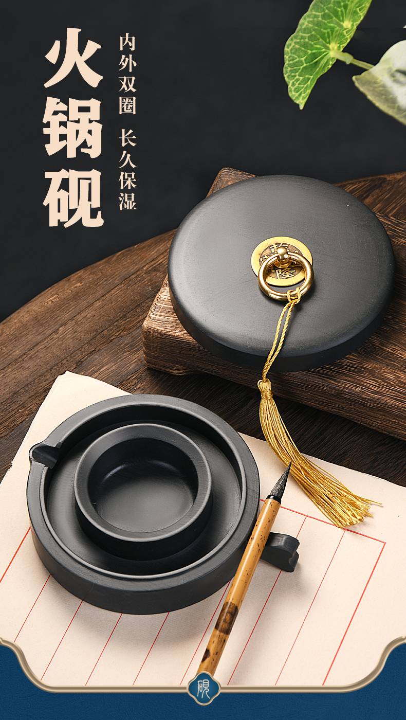 火锅砚台带盖书法专用多功能墨盒墨砚水碟原石天然石料石砚防蒸发密封好初学者练习写毛笔字刻磨墨砚池墨池
