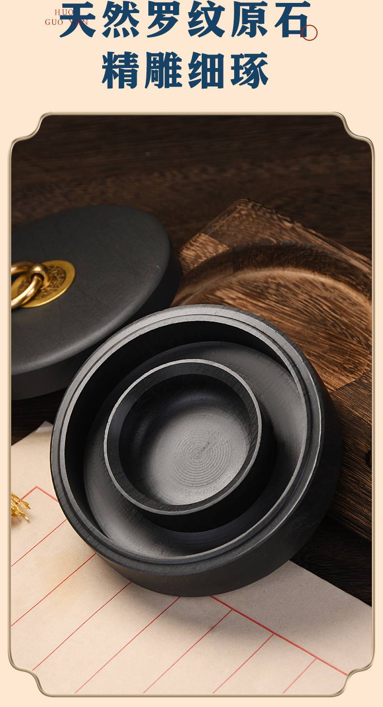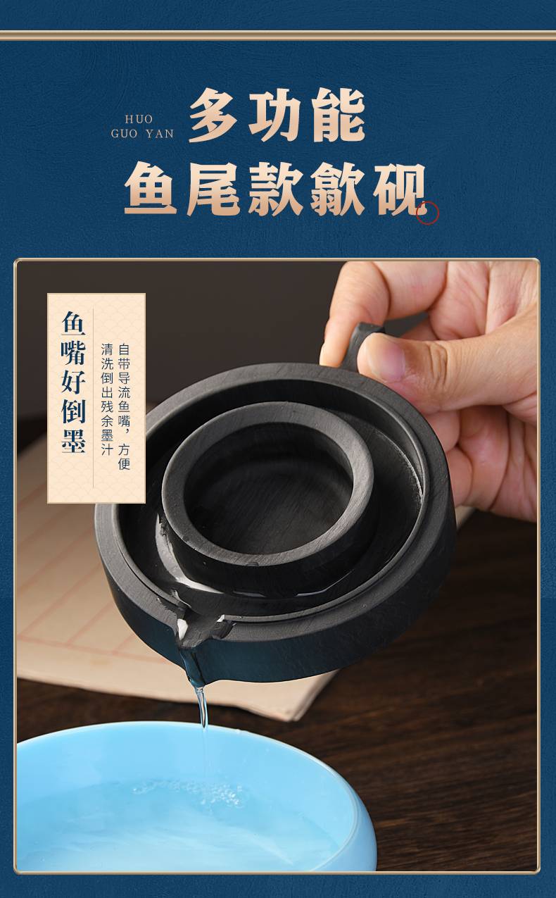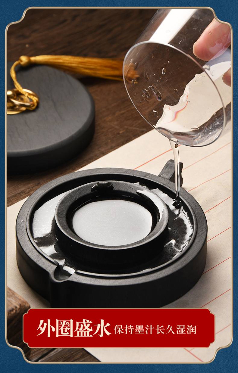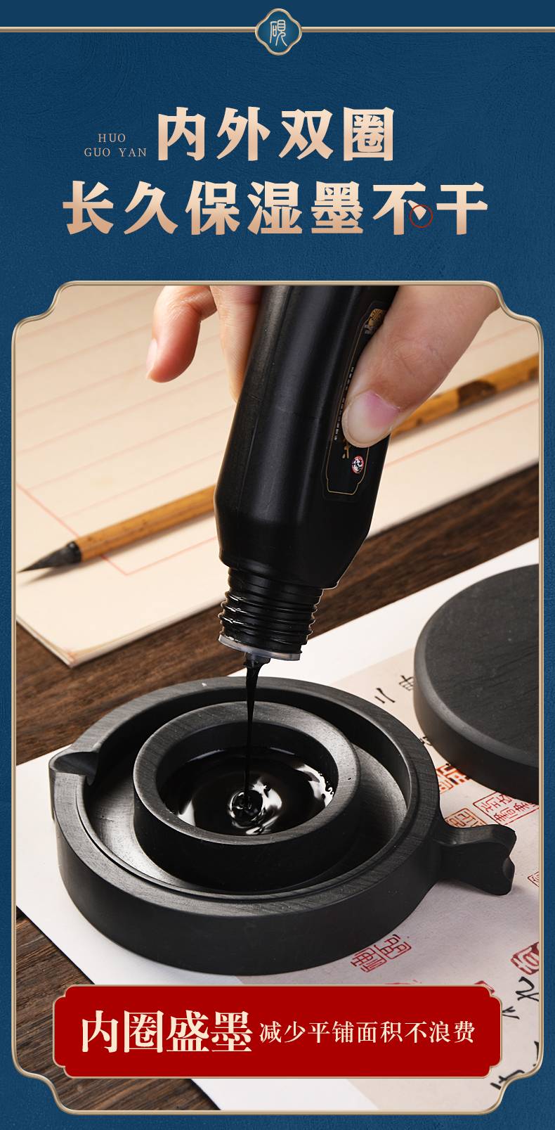 火锅砚台带盖书法专用多功能墨盒墨砚水碟原石天然石料石砚防蒸发密封好初学者练习写毛笔字刻磨墨砚池墨池