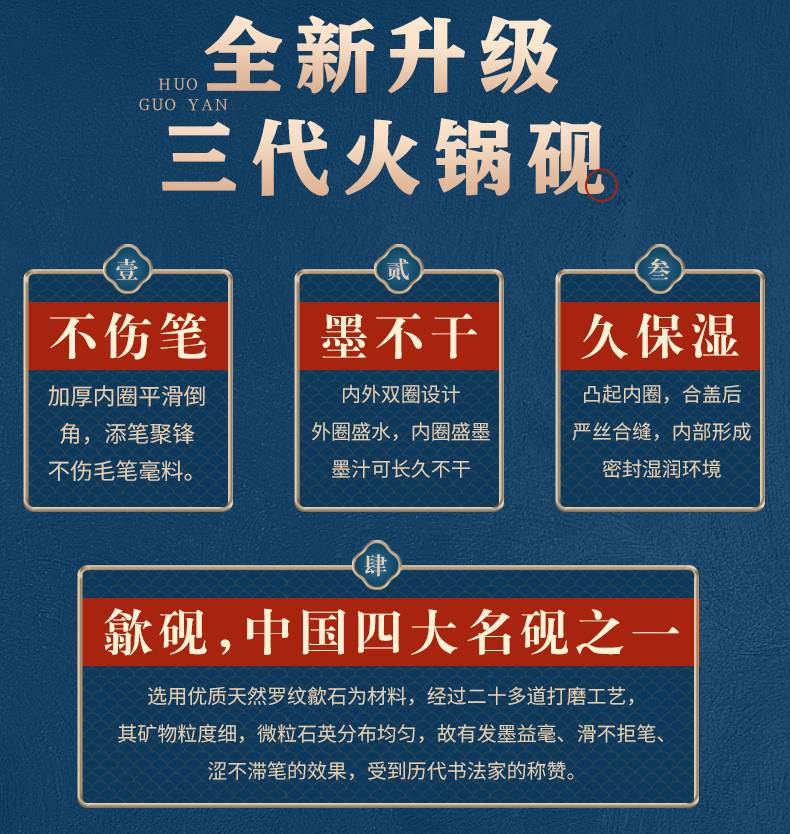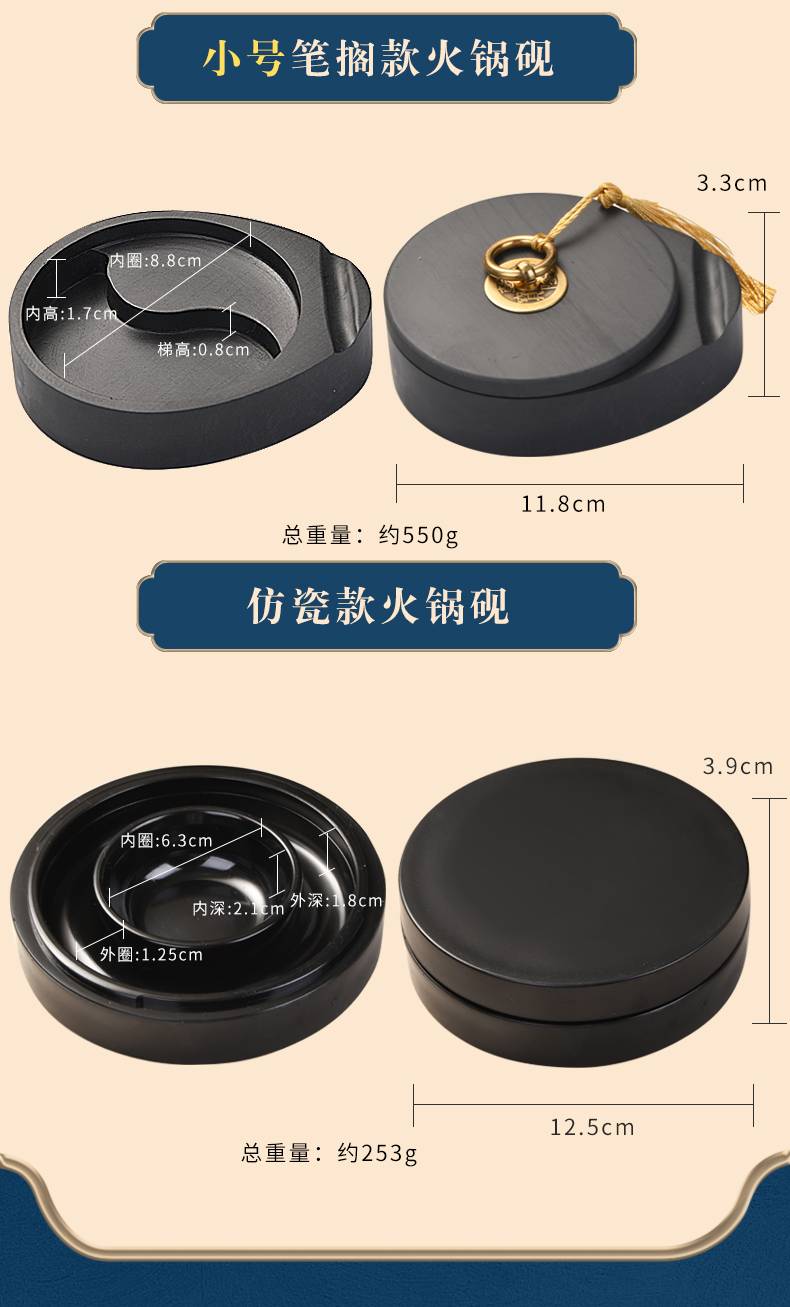 5寸仿瓷火锅砚 4寸平盖火锅砚 5寸平盖火锅砚 6寸平盖