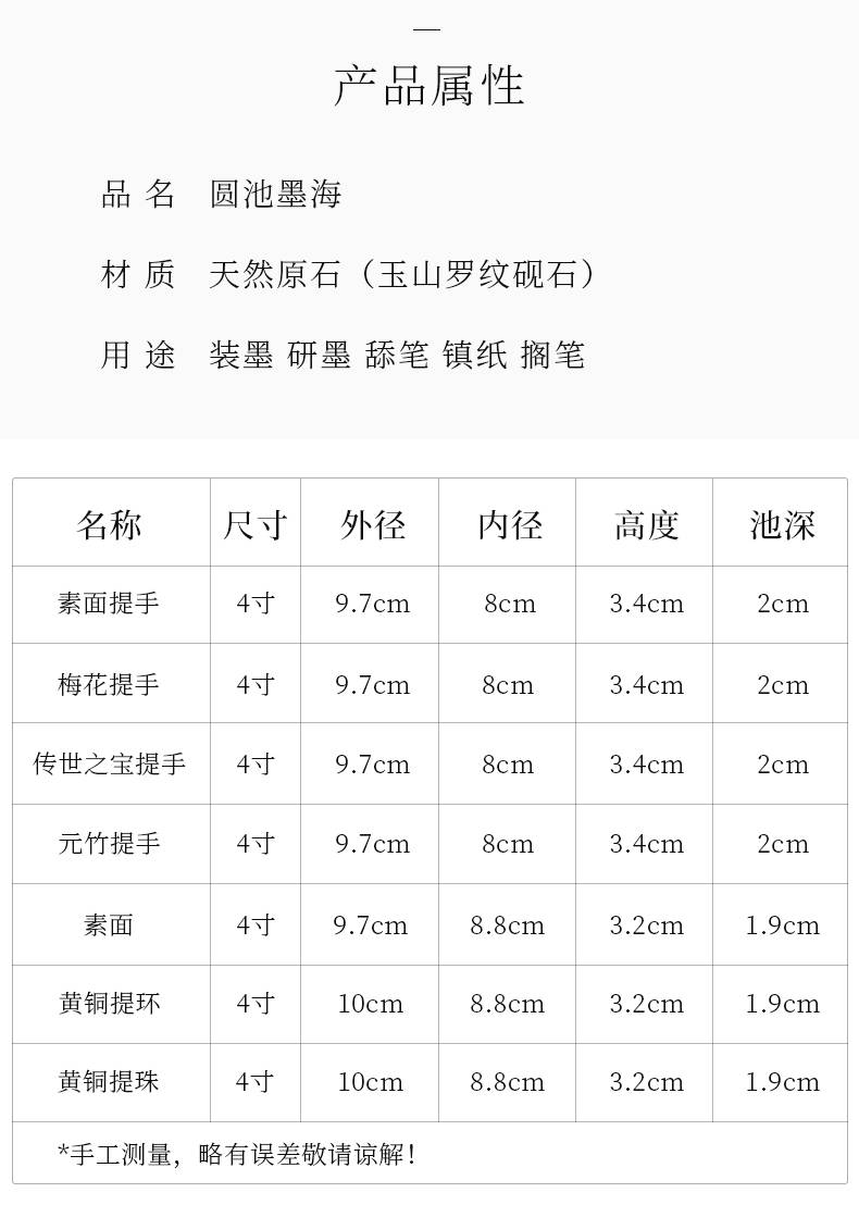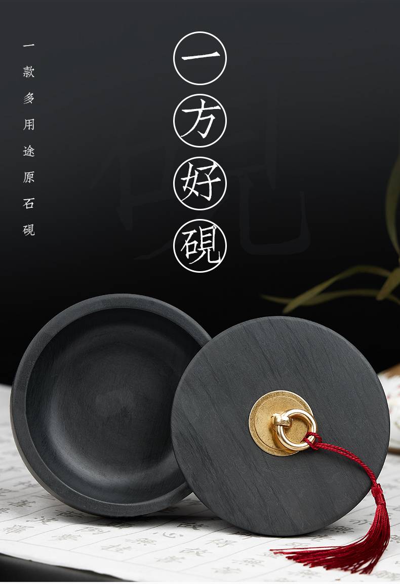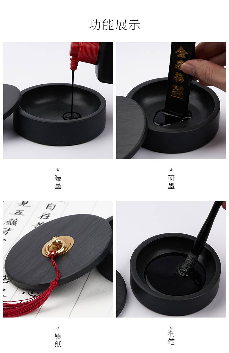 御宝阁原石料砚台素砚墨碟毛笔书法书画专用带盖笔墨纸砚文房四宝小学生儿童学生方便陶瓷黑墨水盒盘防漏打翻