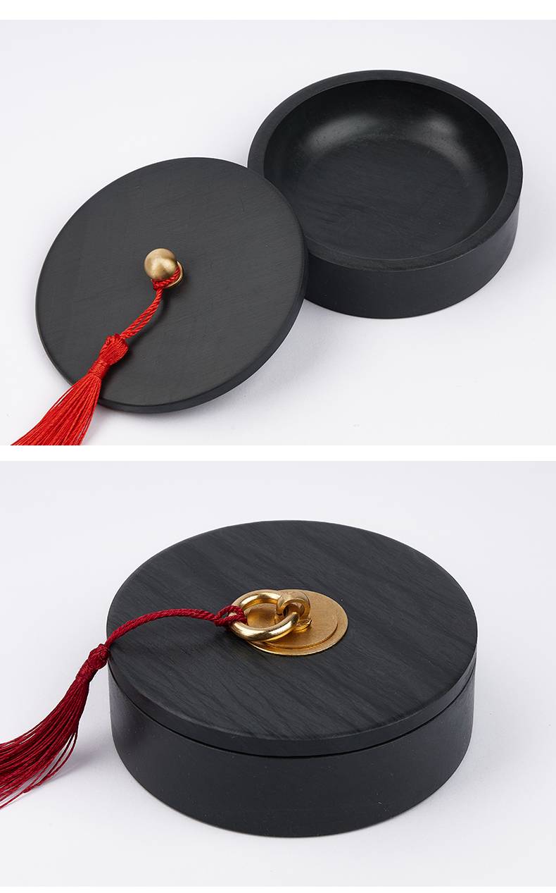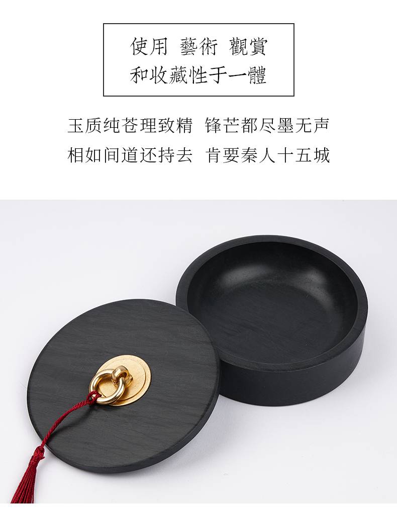 御宝阁原石料砚台素砚墨碟毛笔书法书画专用带盖笔墨纸砚文房四宝小学生儿童学生方便陶瓷黑墨水盒盘防漏打翻
