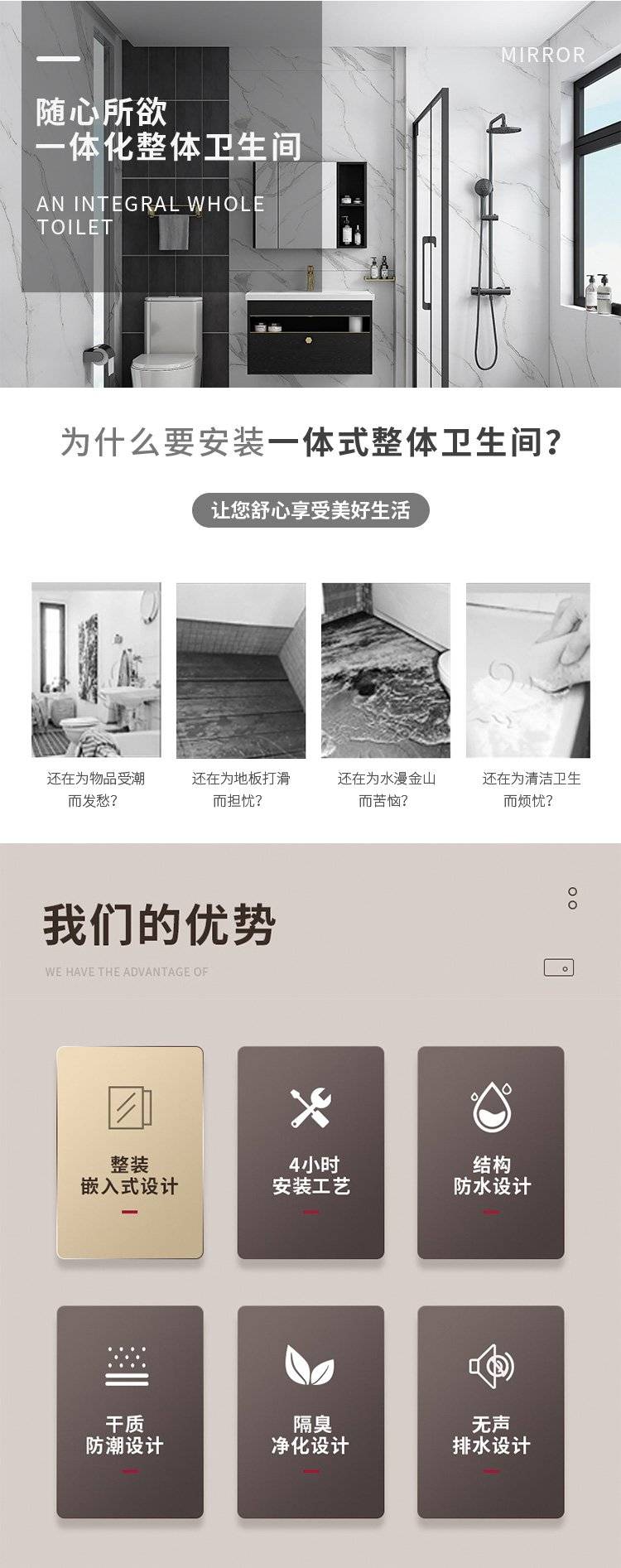 整体卫浴浴室 简易淋浴房 亚克力卫生间洗澡间酒店工地都可适用