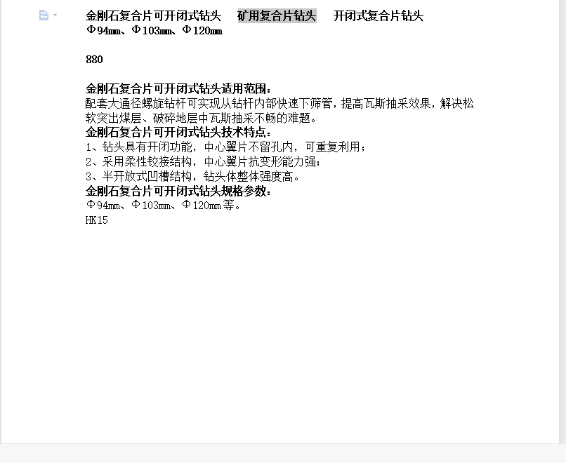 Φ103mm金刚石复合片可开闭式钻头