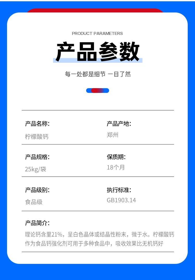 2222分析纯营养强化剂柠檬酸钙1kg/25kg/袋免费发样品