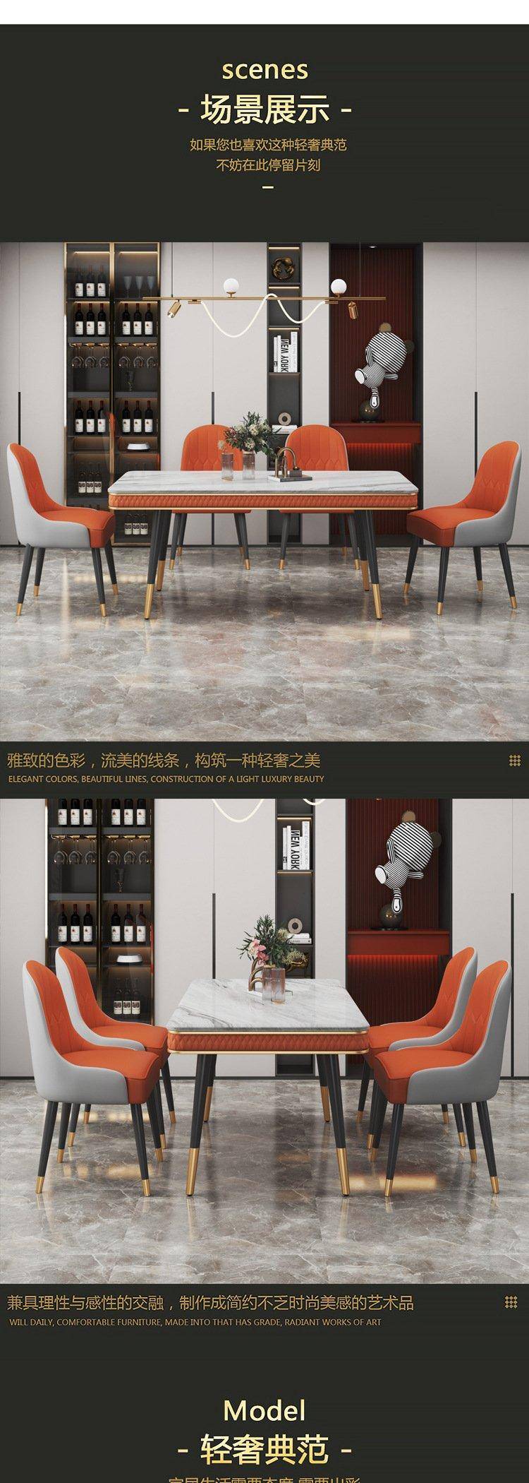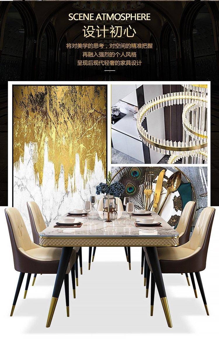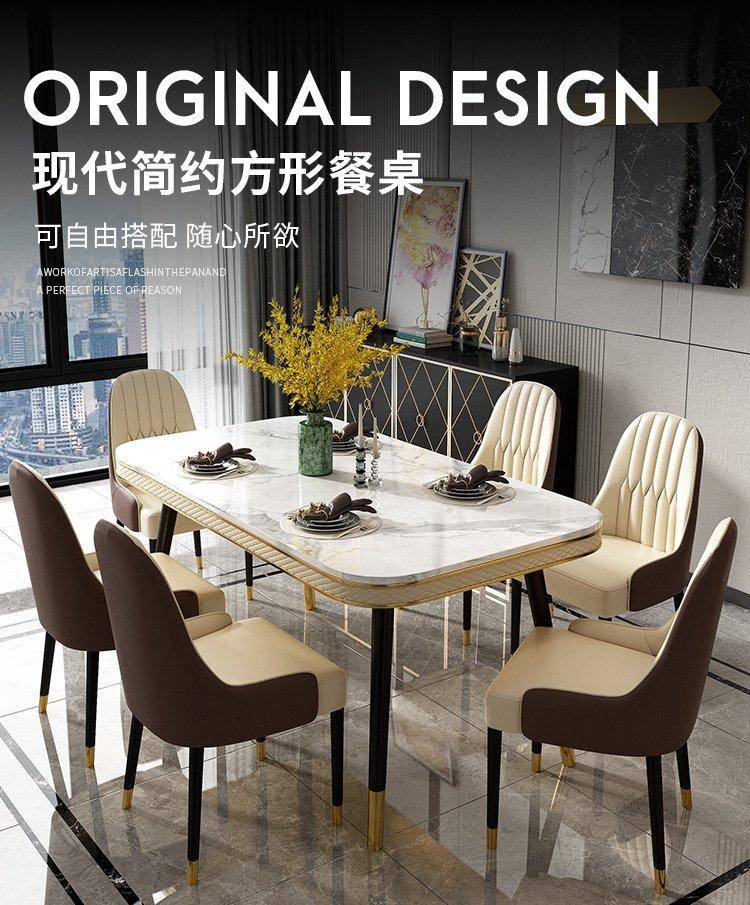 轻奢大理石餐桌椅岩板吃饭桌民宿公寓酒店样板间家具定制